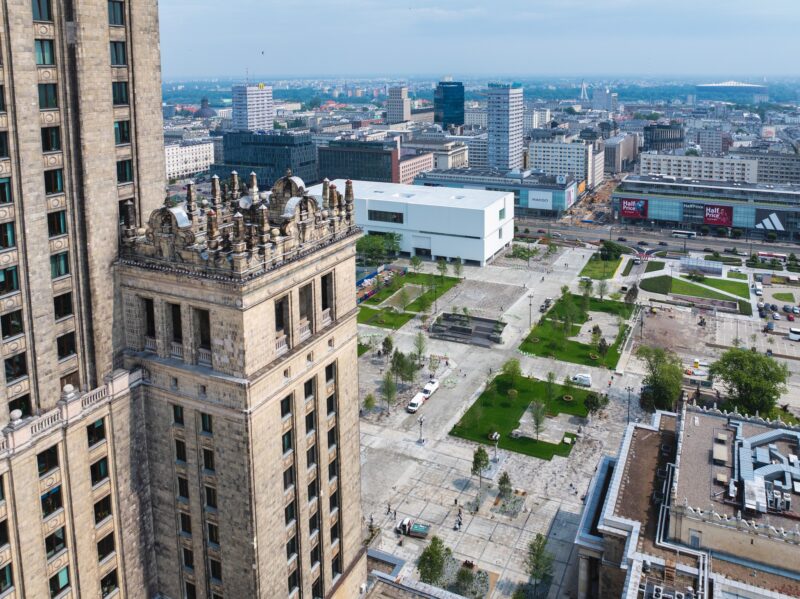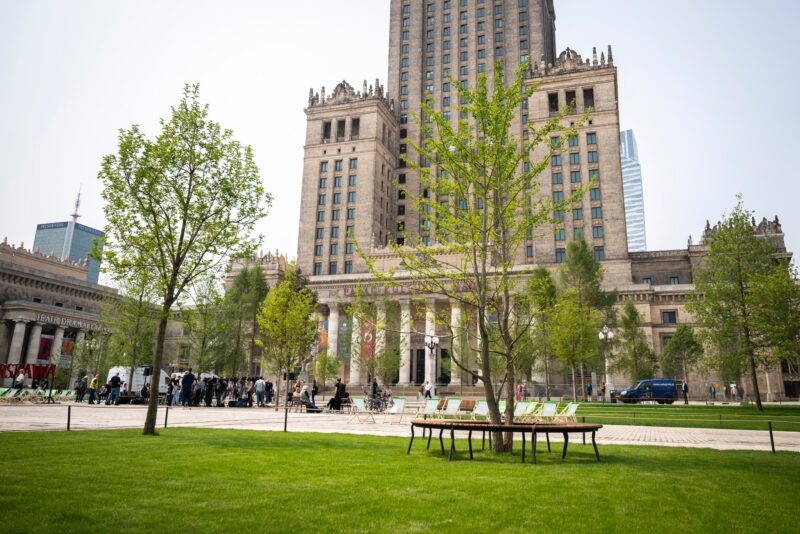 Площа задумана не лише як зелена зона відпочинку, але й як простір для культурного життя міста. Вже у день відкриття тут відбулися музичні виступи. Історичну почесну трибуну переобладнали: на її сходах з’явилися зелені насадження, а верхній рівень пристосували під сцену для подій. Частину площі між трибуною та вулицею Маршалковською передбачено для масових заходів.