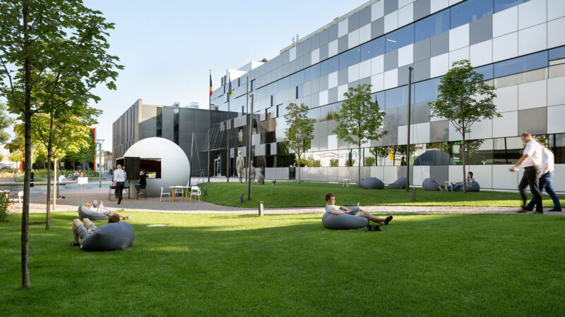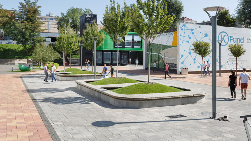 KOTSIUBA Landscape Architecture з перших етапів бере участь у трансформації UNIT.City, створюючи систему публічних просторів, що визначають його характер і відкривають колишню промислову територію для міста.