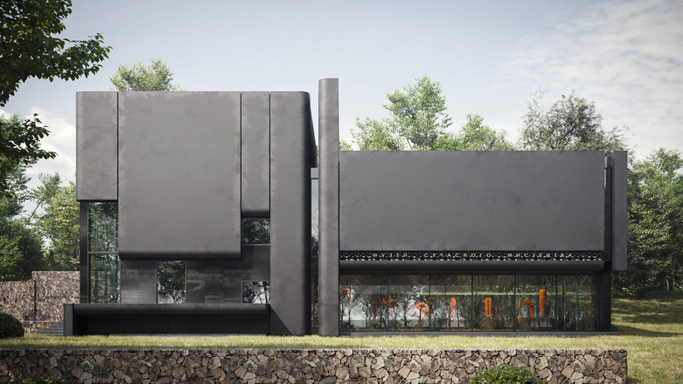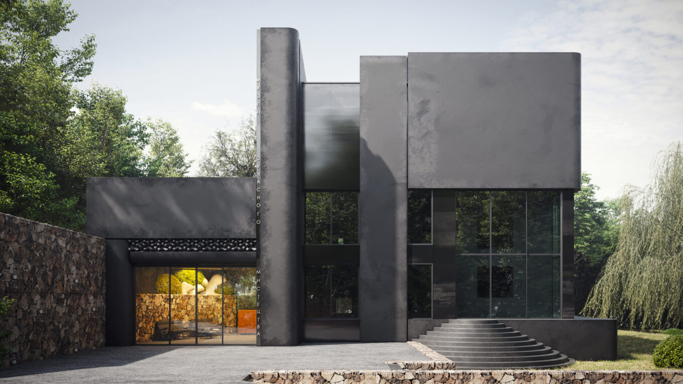 Здалеку велична бетонна споруда музею монолітом виринає з навколишнього ландшафту, спонукаючи всіх, хто її споглядає, підійти ближче і відкрити таємниці, які вона приховує в собі. Але коли відвідувачі наближаються, їх зустрічає разючий контраст чорного фасаду будівлі, який виділяється як маяк творчості та натхнення.