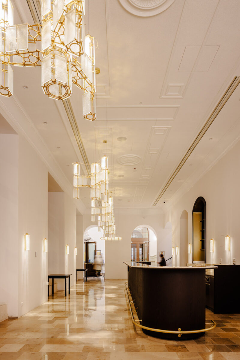 Сучасний акцент — вручну кована золочена латунна стеля над головною сценою — виконує не лише декоративну, а й акустичну функцію. Кольорова палітра у відтінках золота, пастельного рожевого та зеленого відсилає до автентичного стилю фін-де-сєкль.