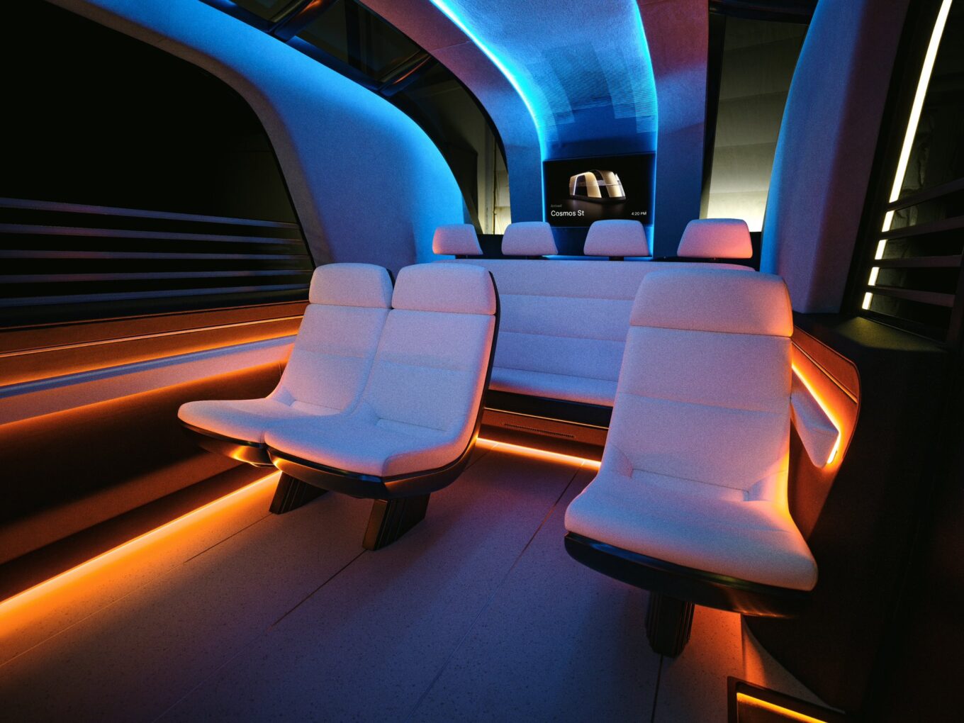 Мікроавтобус Robovan теж без керма і педалей. Він має бездротову зарядку і вміщує до 20 осіб.