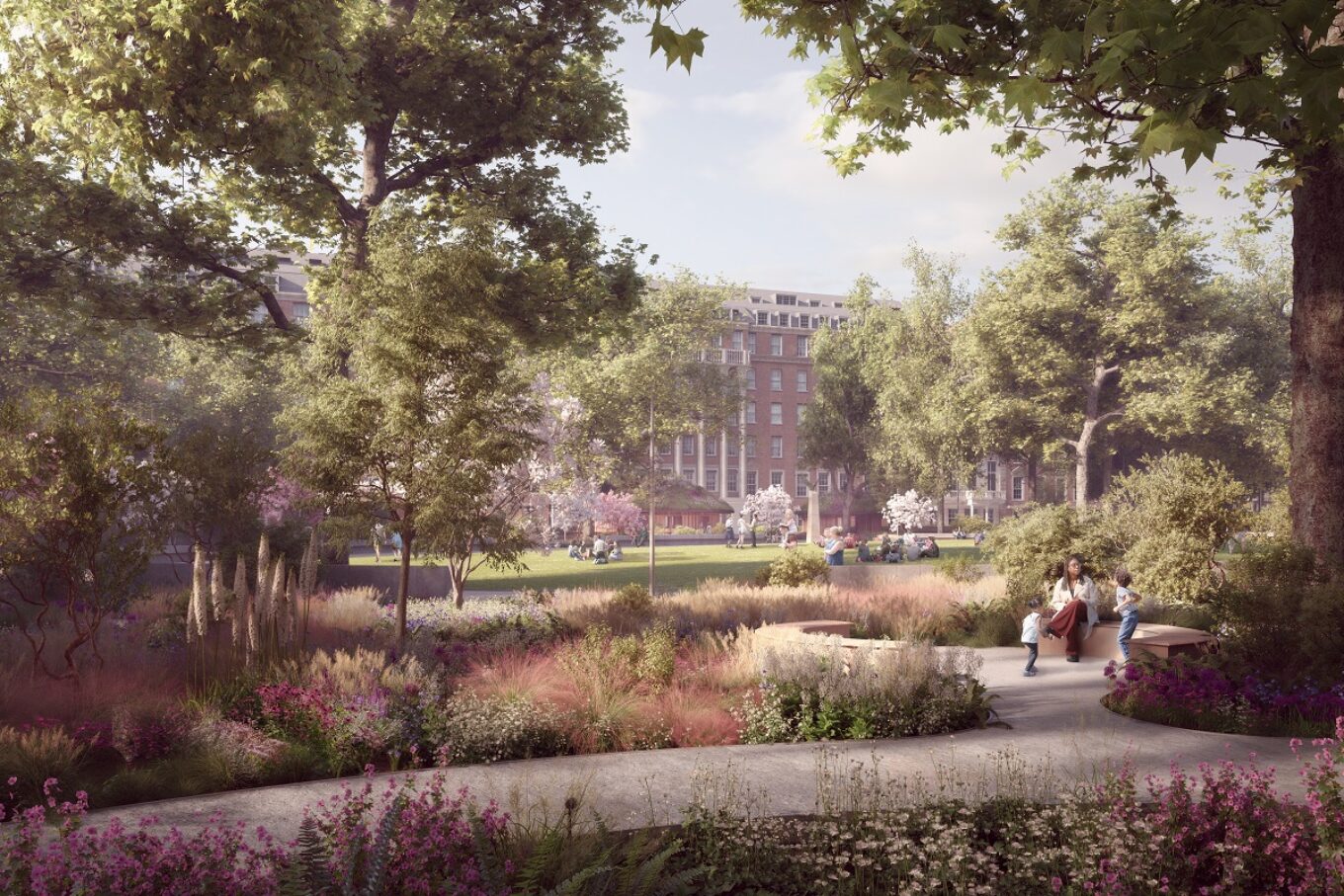 Проєкт, який нині затвердили в комітеті з питань будівництва Вестмінстерської міської ради, передбачатиме облаштування садової території громадськими просторами, декоративними водоймами, мініводоспадами й постаментами для проведення виставок, пише Architects journal.