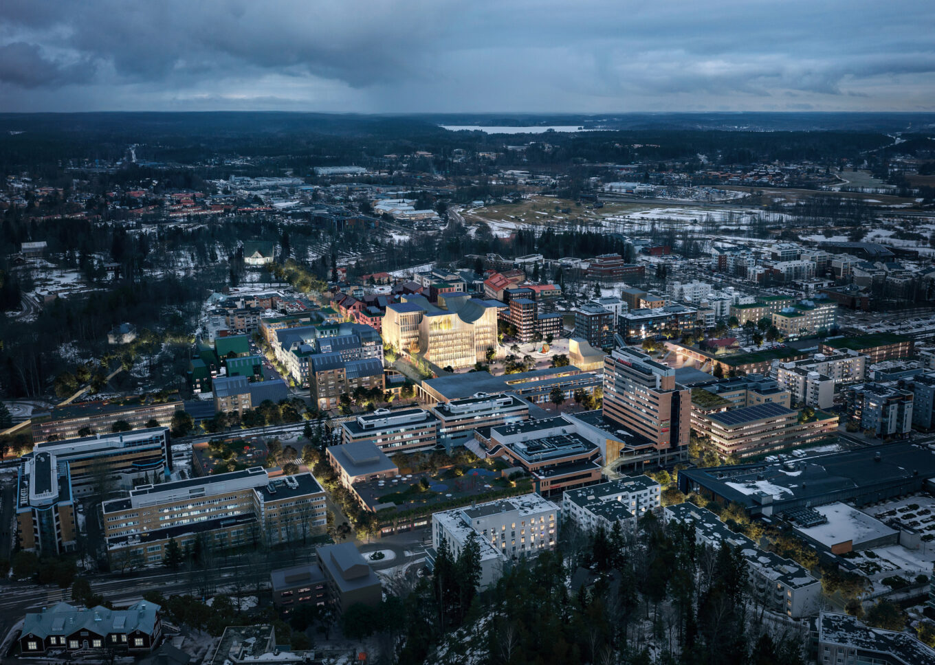 Дерево буде основним матеріалом для будівництва Espoo House площею 24 000. Конструкція складатиметься з прямокутних об’ємів різної висоти з вигнутим дахом. Будівля муніципалітету розміщуватиме адміністрацію міста, а також буде відкрита для мешканців.