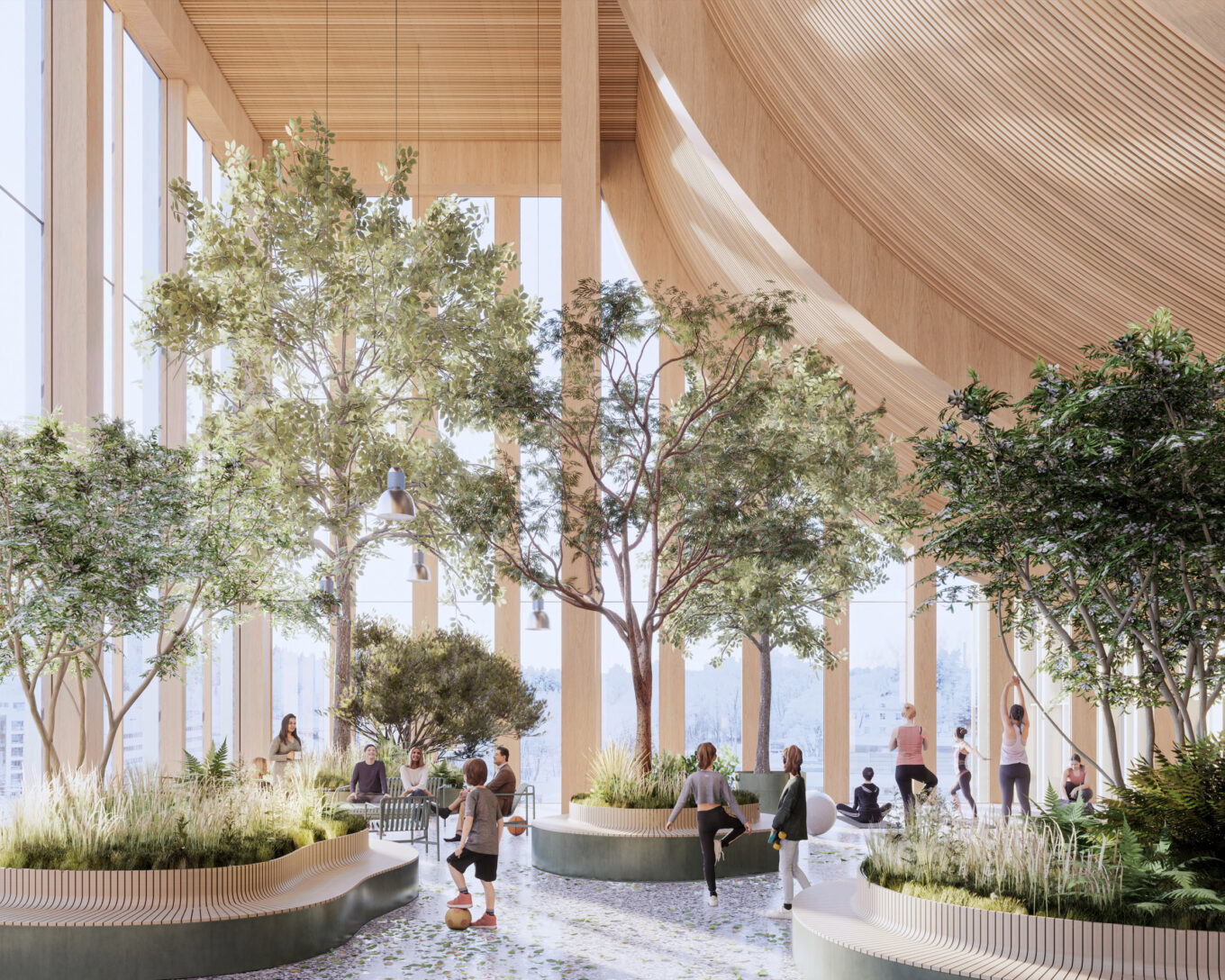 Використання деревини також має зменшити викиди вуглецю в будівлі, оскільки цей матеріал має нижчий вміст цієї речовини в порівнянні з традиційним бетоном і сталлю.