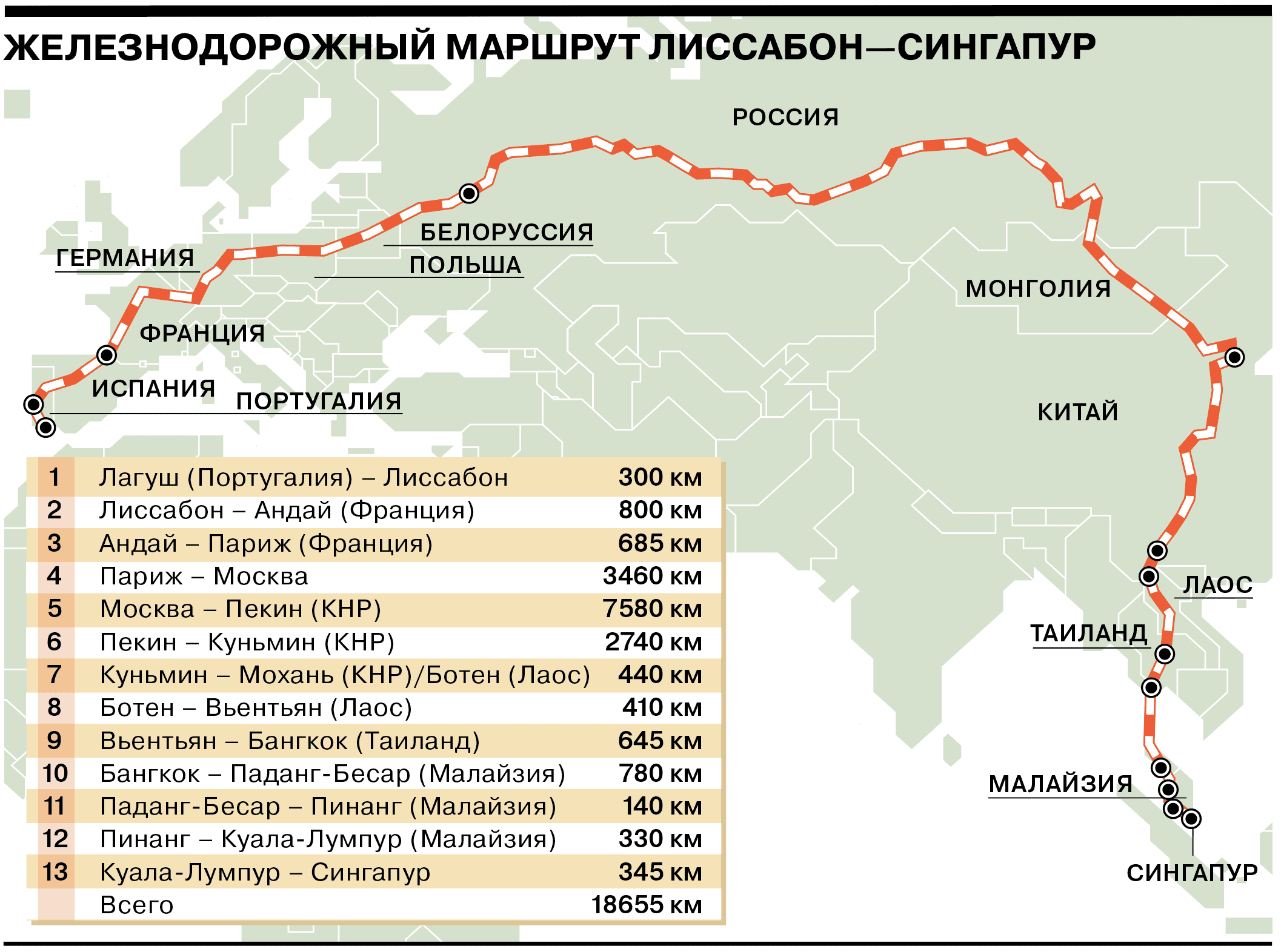 Рекордний маршрут проклали завдяки облаштуванню колії між лаоськими містами Ботен та В’єнтьян. Саме її не вистачало, аби сформувати найдовший шлях в історії залізничного транспорту, – пише видання 34travel.