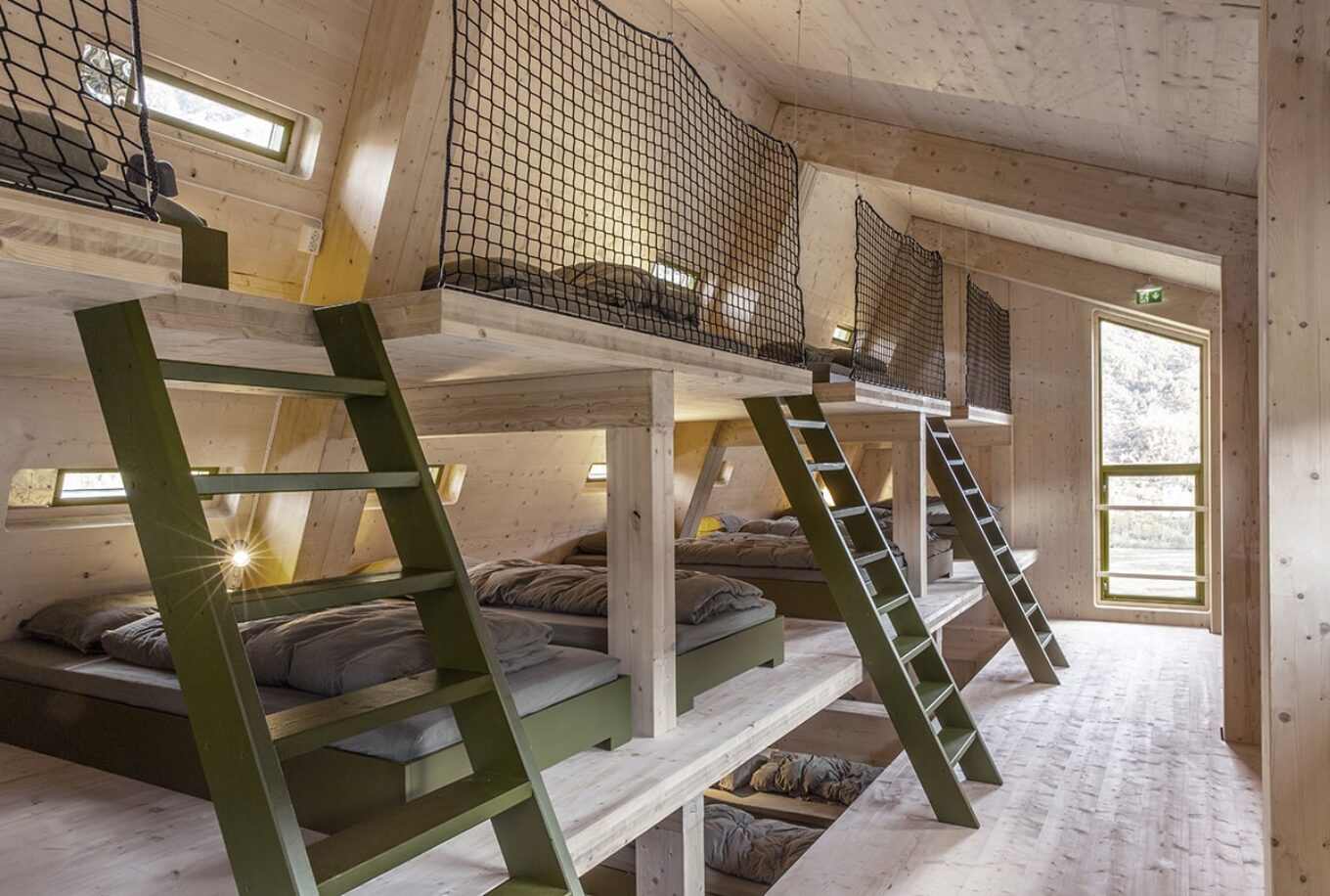 Кроме двух общежитий, здесь есть несколько отдельно стоящих односпаленных кают. Архитектура построек для турбазы является развитием проекта Fuglemyrhytta – деревянного домика, разработанной Snøhetta для туристического маршрута вокруг Осло в 2018 году и быстро ставшего сверхпопулярным.