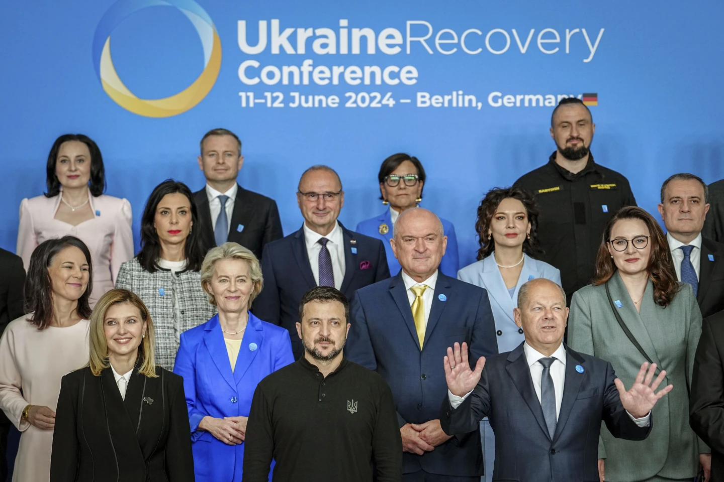 Володимир Зеленський, Олена Зеленська, Урсула фон дер Ляєен, Олаф Шольц та інші політики присутні на Конференції з відновлення України у Берліні. Фото: AP