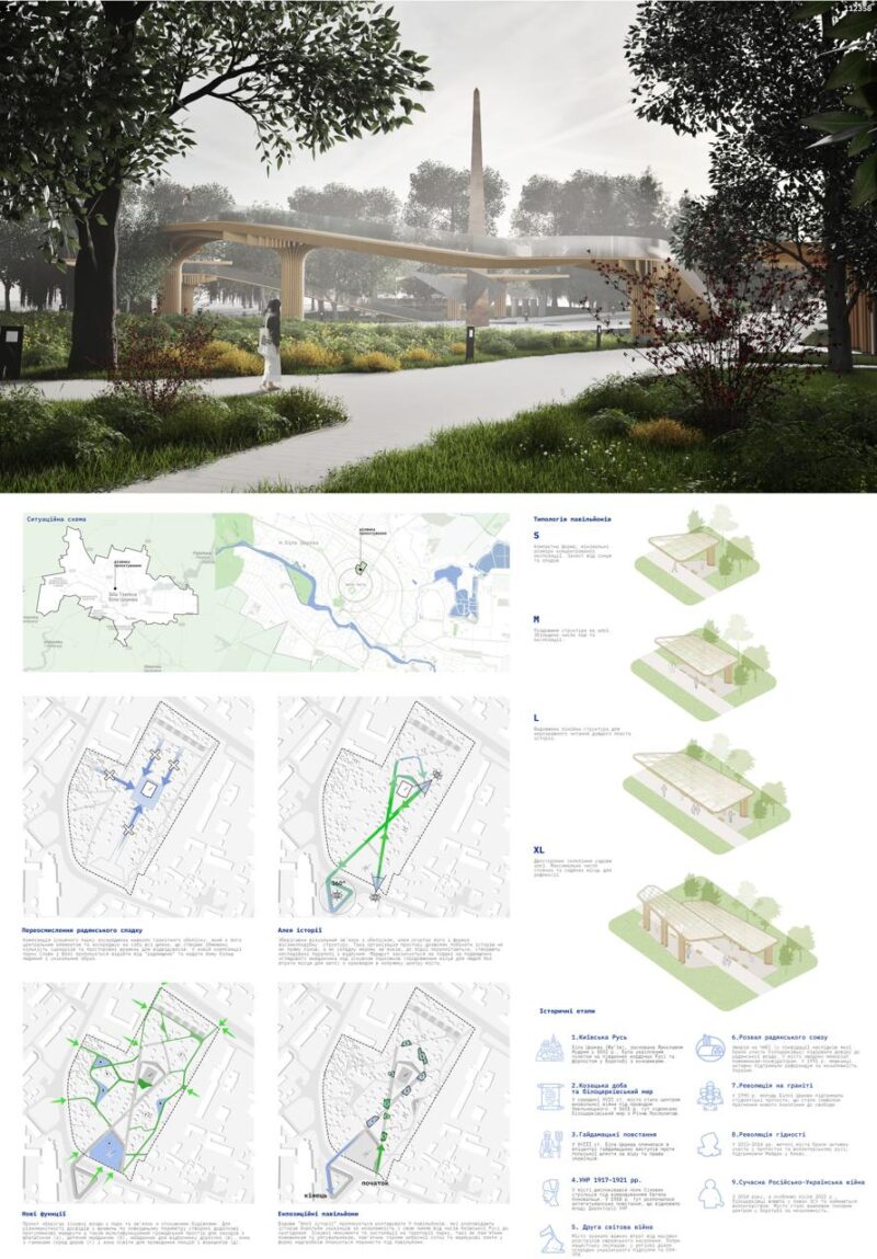 Друге місце посіла команда з Білої Церкви, яка запропонувала сміливу альтернативу типовим радянським підходам до планування меморіалів. А третю премію отримав ще один колектив із Києва за глибоке переосмислення структури парку та цікаве бачення меморіальної зони.
