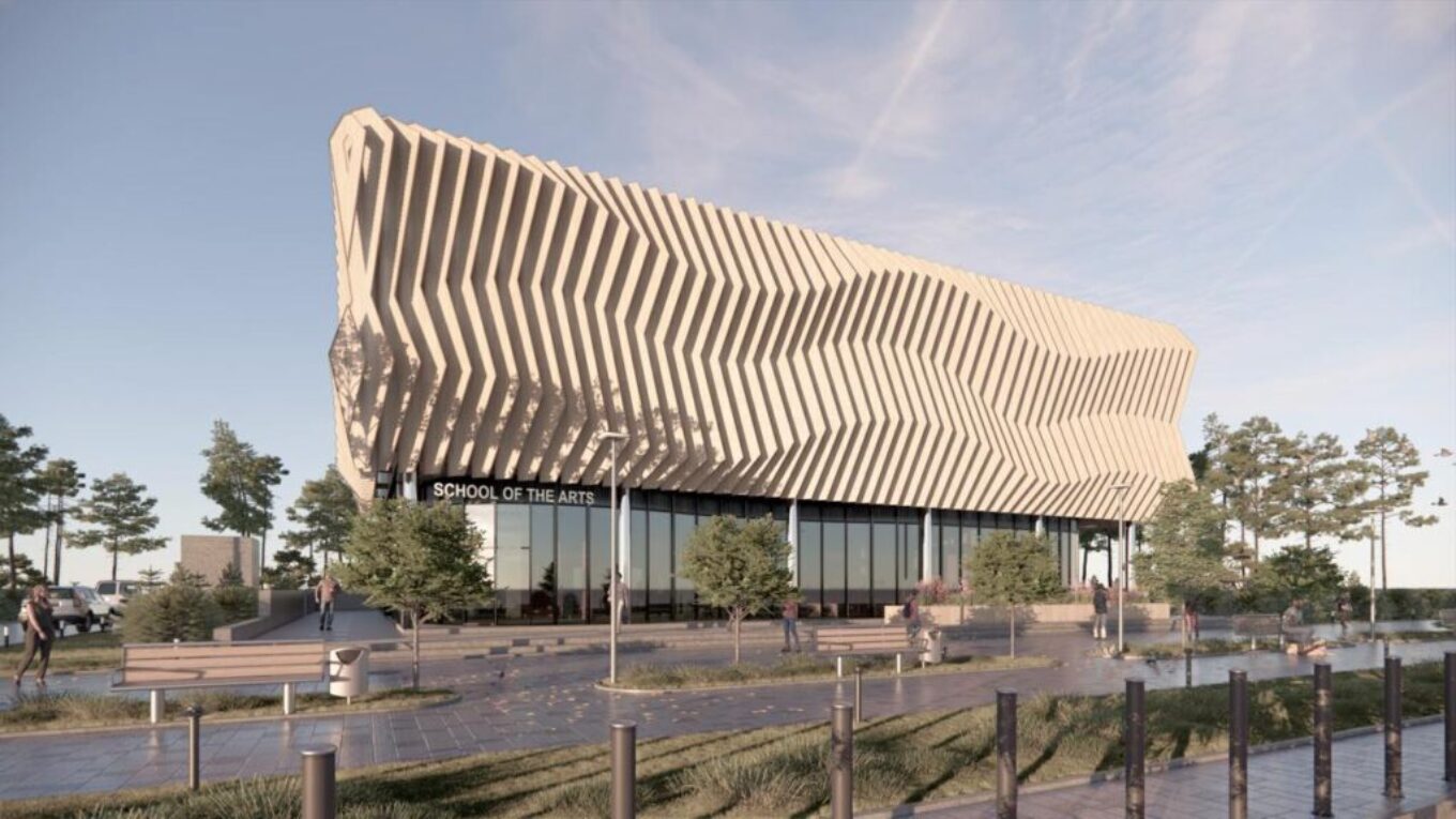 “Головний фасад будівлі буде прикрашений хвилястими формами, що символізують творчість. Матеріали, як-от світлий бетон і дерево, забезпечать баланс естетики та затишку”, – йдеться у повідомленні.