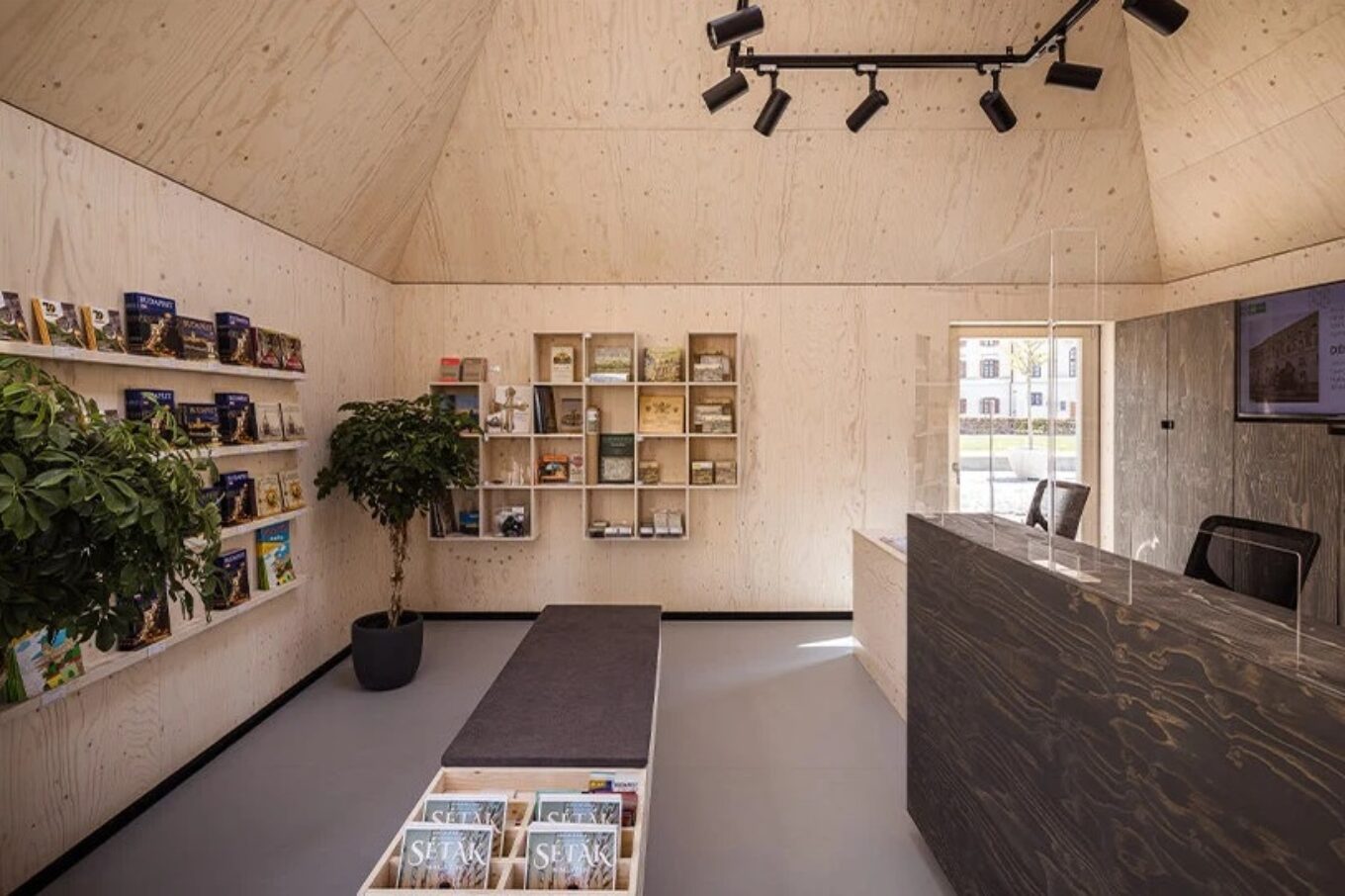 Крім того, в основній споруді, яка виконує роль інформаційного центру, мансардне вікно збагачує приміщення світлом.
