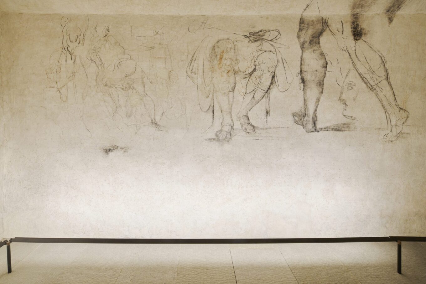 Під двома шарами штукатурки знайшли різноманітні грубі контури людських фігур і облич, виконані чорним вугіллям та червоною крейдою. Відтоді до них мали обмежений доступ лише реставратори та дослідники.