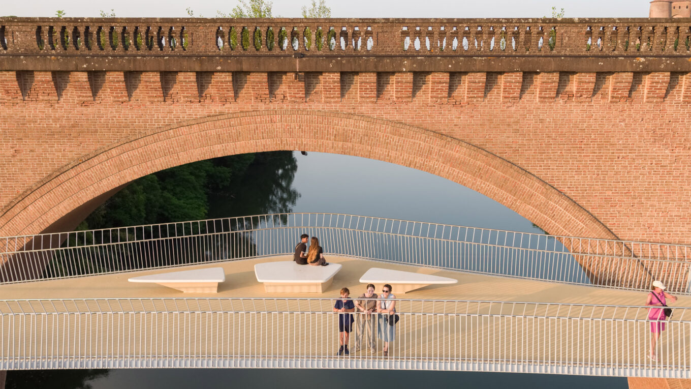 Міст з’єднує центр Альбі з районами по інший бік Тарну, створюючи не лише шлях, а й місця для споглядання.