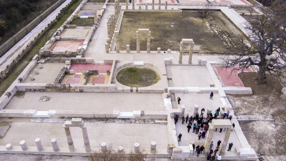 Палац, розташований неподалік північного портового міста Салоніки. Він був зруйнований римлянами, і його руїни виявили під час розкопок в XIX столітті.