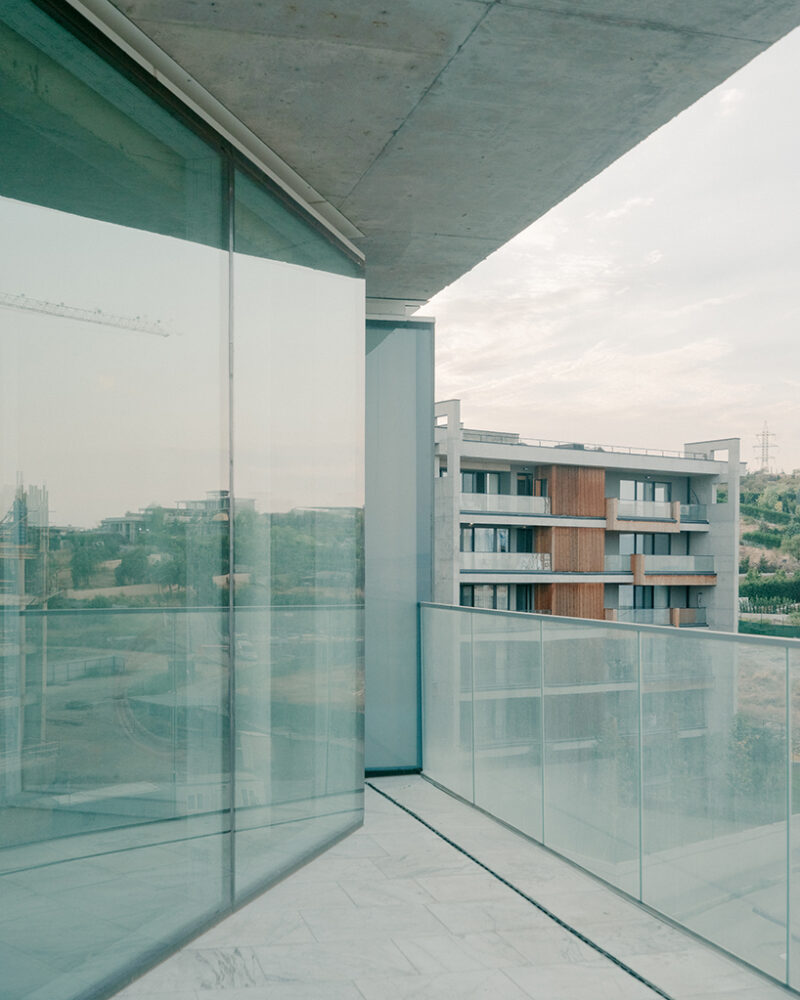 Квартири мають двосторонню орієнтацію, а напівзасклені зимові сади — так звані glass rooms — створюють перехідні простори, придатні для використання протягом року. Велику увагу приділено просторим балконам, які стали візуальною та функціональною домінантою будівлі.