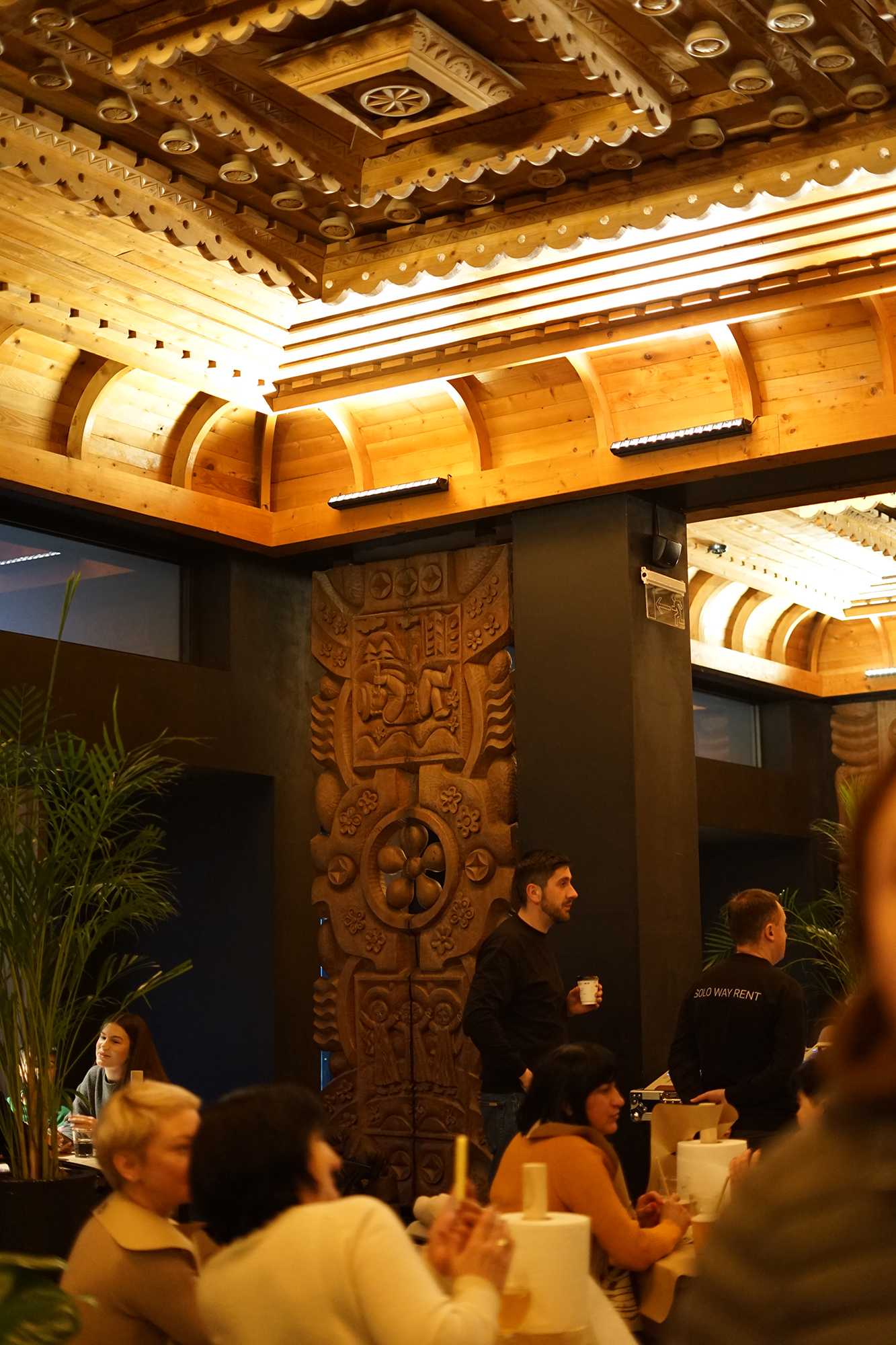 Під час реконструкції власники вирішили не демонтувати старе оздоблення, а інтегрувати його в сучасний дизайн. В інтер’єрі залишили автентичні дерев’яні панелі, складні різьблення та оригінальні розписи, які прикрашали стіни кафе ще з вісімдесятих років.