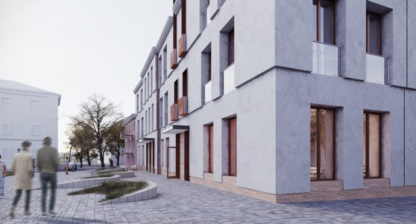 Серед 18-ти робіт, що були подані на відкритий архітектурний конкурс, обрані найкращі екскізні проєкти реконструкції нежитлової будівлі офсетного цеху під офісні, адміністративні приміщення, приміщення виставкової зали, майстерні та закладу громадського харчування.