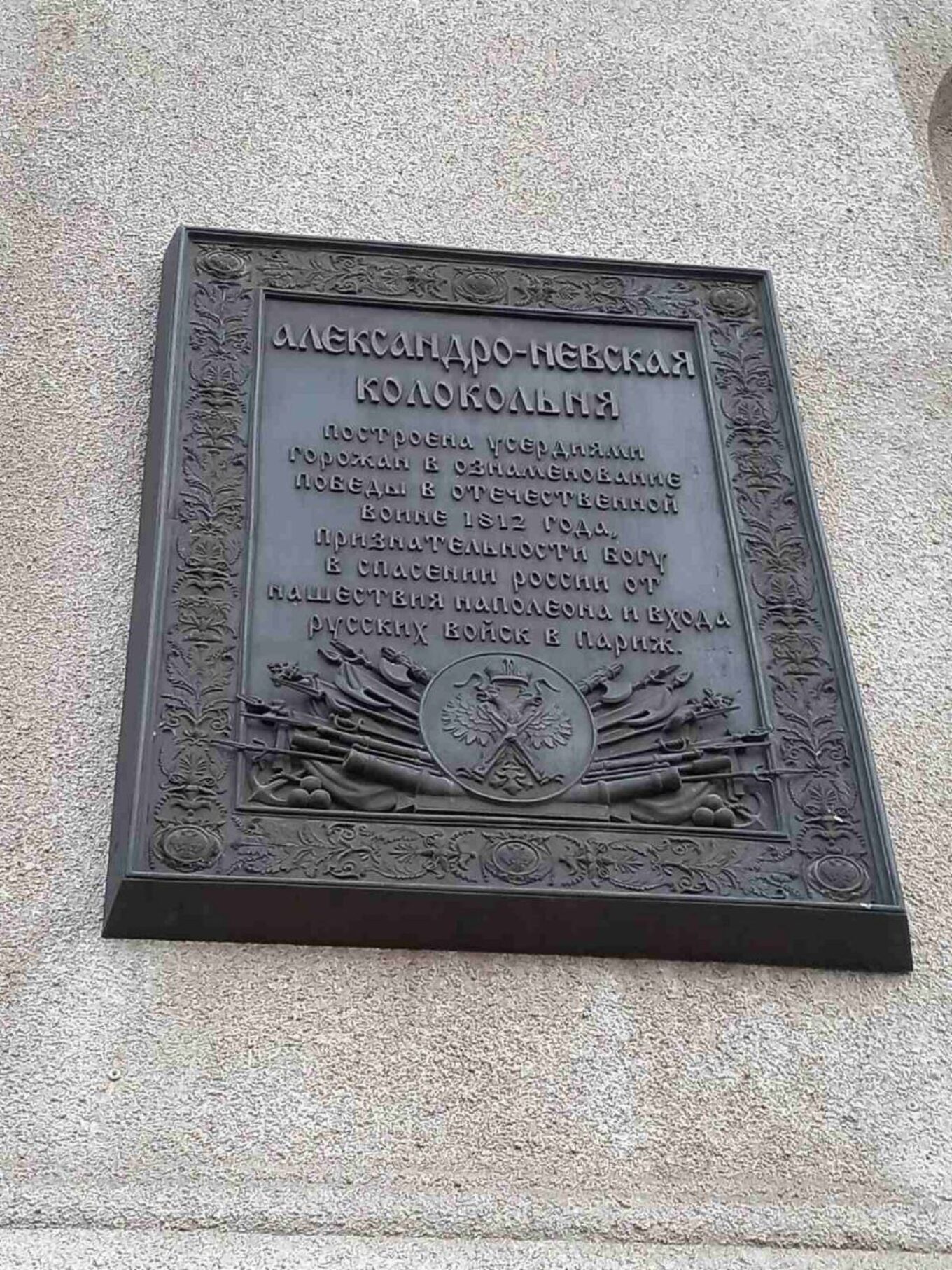 На дошці, що розташована на будівлі дзвіниці по вулиці Університетській, 11, йдеться про подяку Богу за “спасіння Росії від нашестя Наполеона”. Активісти проєкту звернулись до ХОВА з проханням демонтувати це.