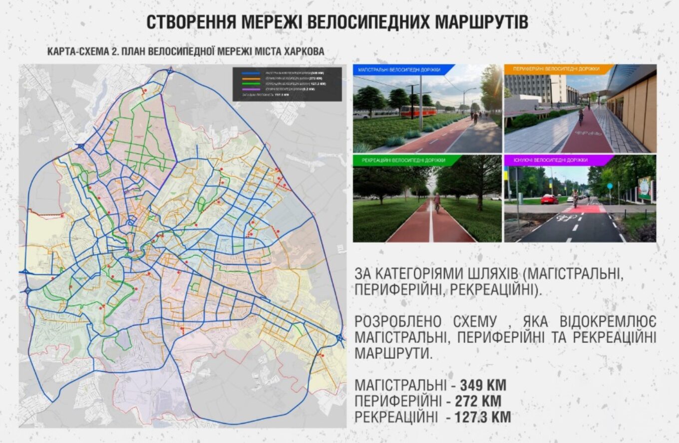 Концепція була розроблена на замовлення Департаменту будівництва та шляхового господарства і передбачає облаштування близько 757 км веломаршрутів у Харкові, передає спільнота Формат А:1.
