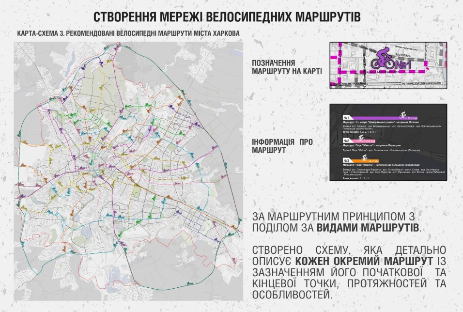 Концепція була розроблена на замовлення Департаменту будівництва та шляхового господарства і передбачає облаштування близько 757 км веломаршрутів у Харкові, передає спільнота Формат А:1.