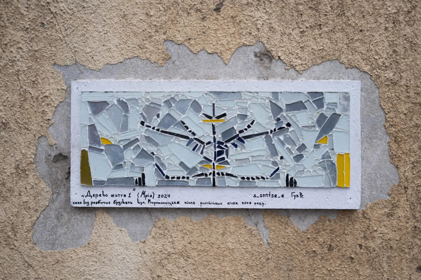 “Дерево життя 2” (Око війни), 2024. Мозаїка розташована на вул. Квітки-Основ’яненка,13. Фото: Юрій Каплюченко