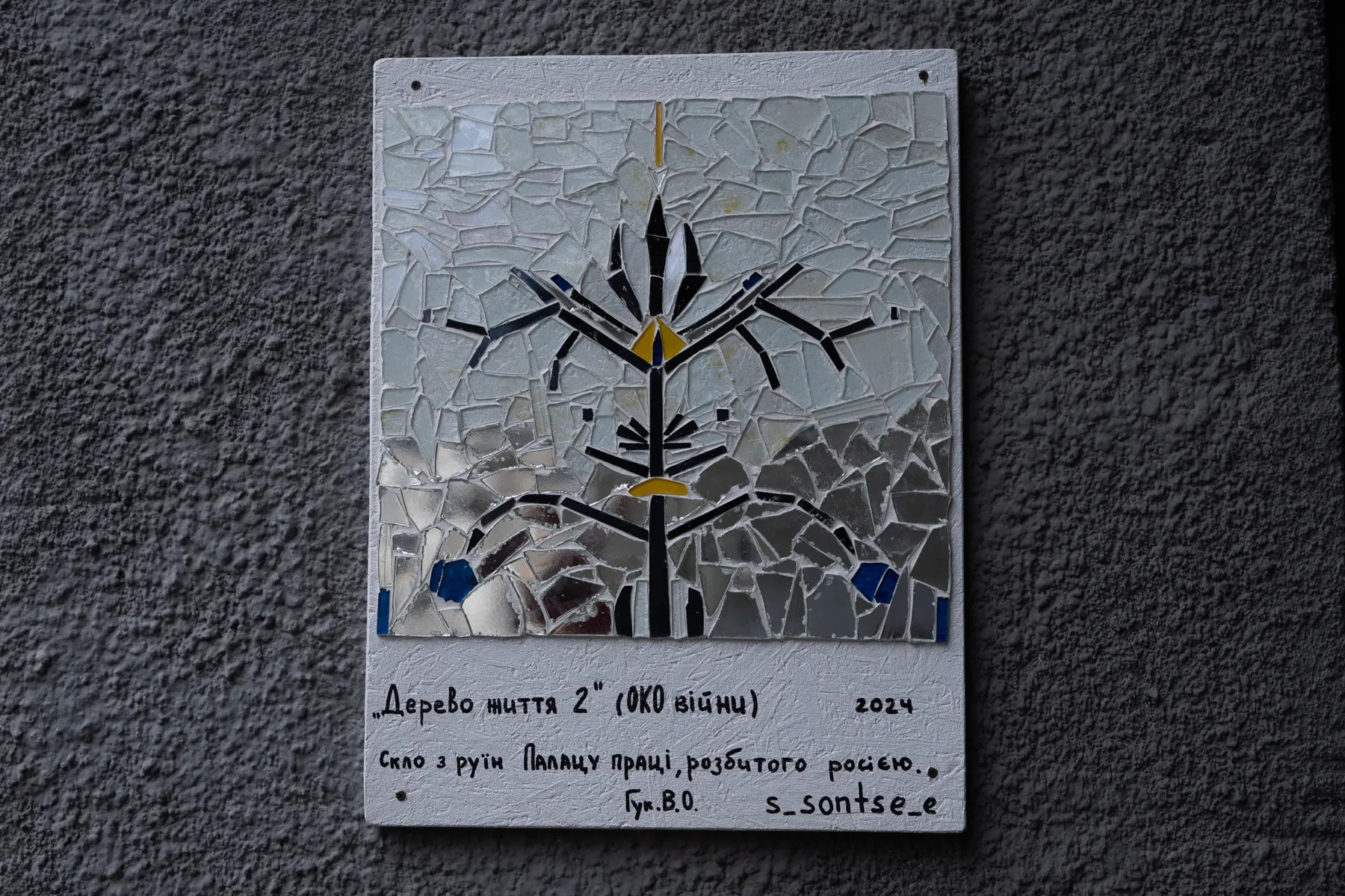 “Дерево життя 2” (Око війни), 2024. Мозаїка розташована на вул. Квітки-Основ’яненка,13. Фото: Юрій Каплюченко
