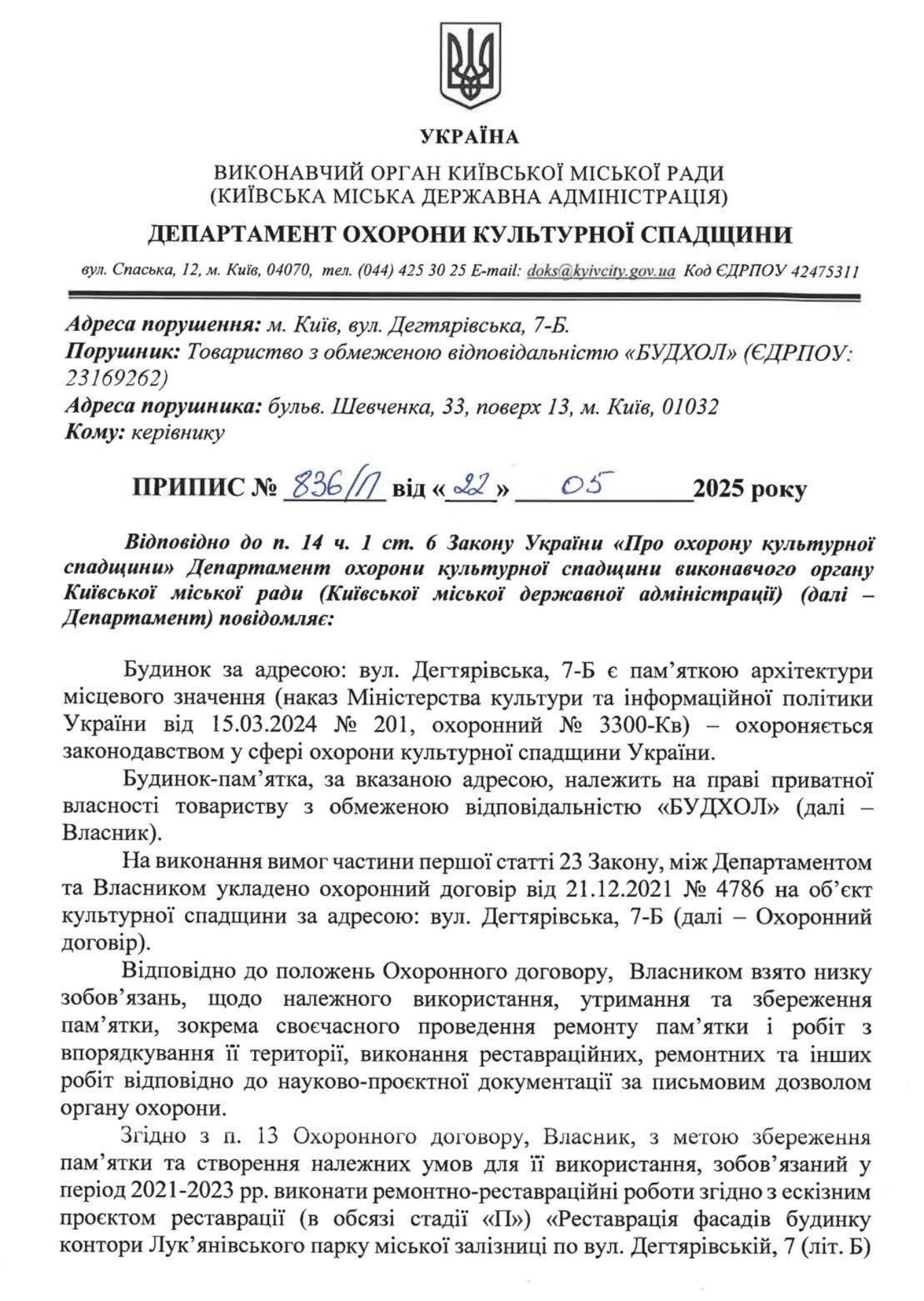 Нагадаємо, у 2023 році ДОКС вже виписував припис власнику будівлі та роботи на обʼєкті зупиняли.
