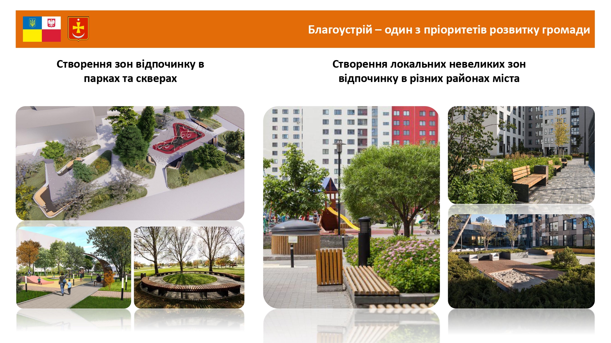 Також у громаді працюватимуть над альтернативною енергетикою. Для цього побудують сонячну станцію на ділянці очисних споруд і термомодернізують громадські будівлі. Проведуть реконструкцію станції стічних вод, трамвайних колій і тягових підстанцій трамвайних та електричних мереж. Хочуть також модернізувати й розвивати дорожню та велосипедну інфраструктуру громади.