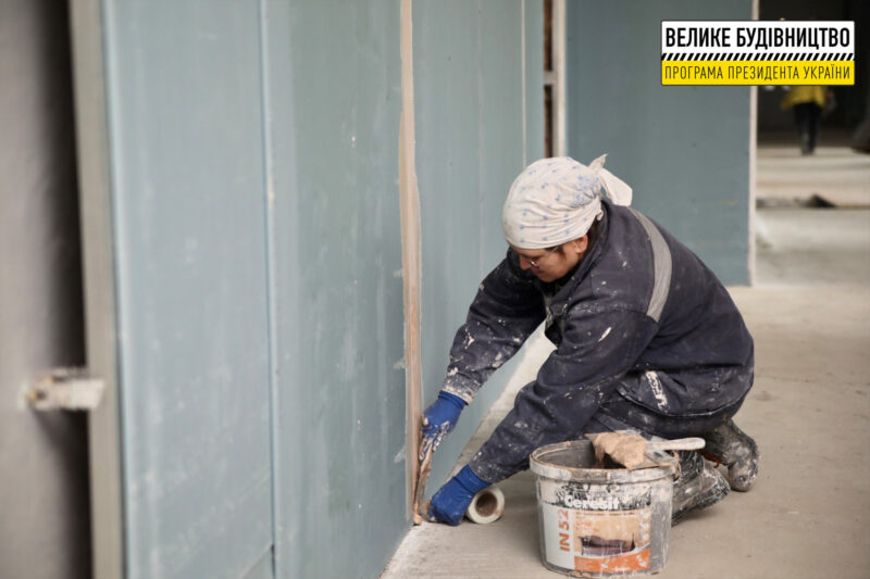 Зараз підрядники працюють над інтер’єром навчального корпусу. Їм уже вдалось замінити усі вікна й покращити інженерні комунікації. Наразі обшивають стіни гіпсокартоном і шпаклюють.