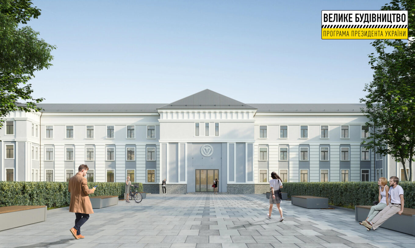 Такий вигляд матиме фасад навчального корпусу ліцею після реставрації. Візуалізація: Велике будівництво