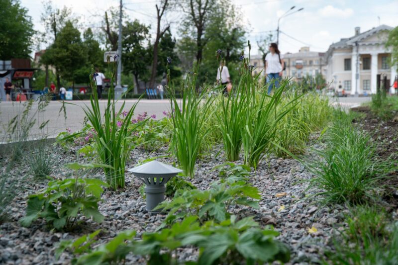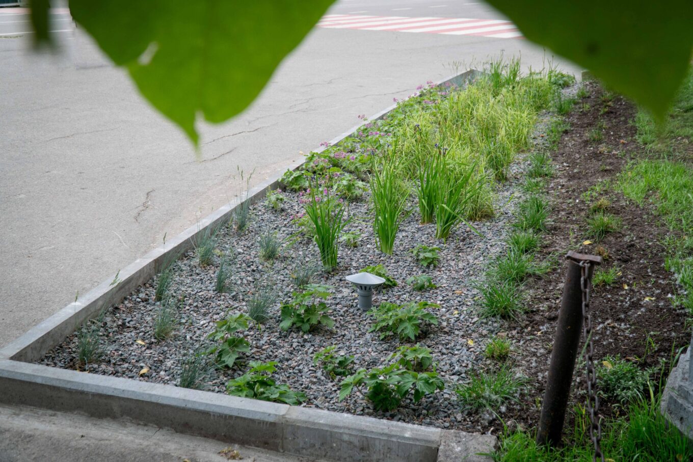 У Києві почали створювати перші дощові садки – унікальні ландшафтні рішення для збирання та подальшої утилізації води, що мають вигляд квіткової клумби. Фото: КМДА