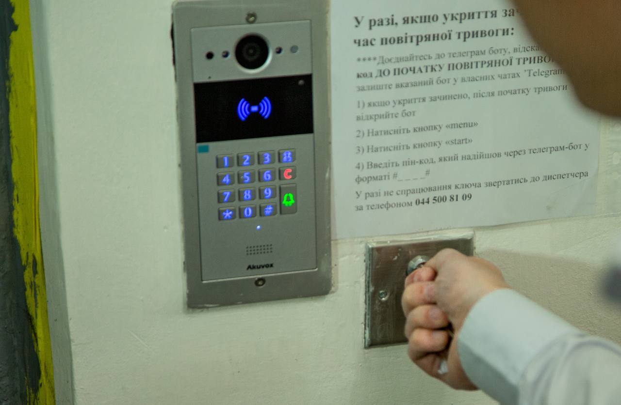 Вихід із закритого сховища безконтактний – достатньо піднести руку до сенсорної кнопки. Диспетчер має змогу не лише відчиняти двері і тримати голосовий зв’язок з відвідувачами сховища, а ще й контролювати справність системи. У разі виникнення несправностей чи технічних проблем диспетчер може оперативно викликати технічну підтримку для відновлення роботи обладнання.