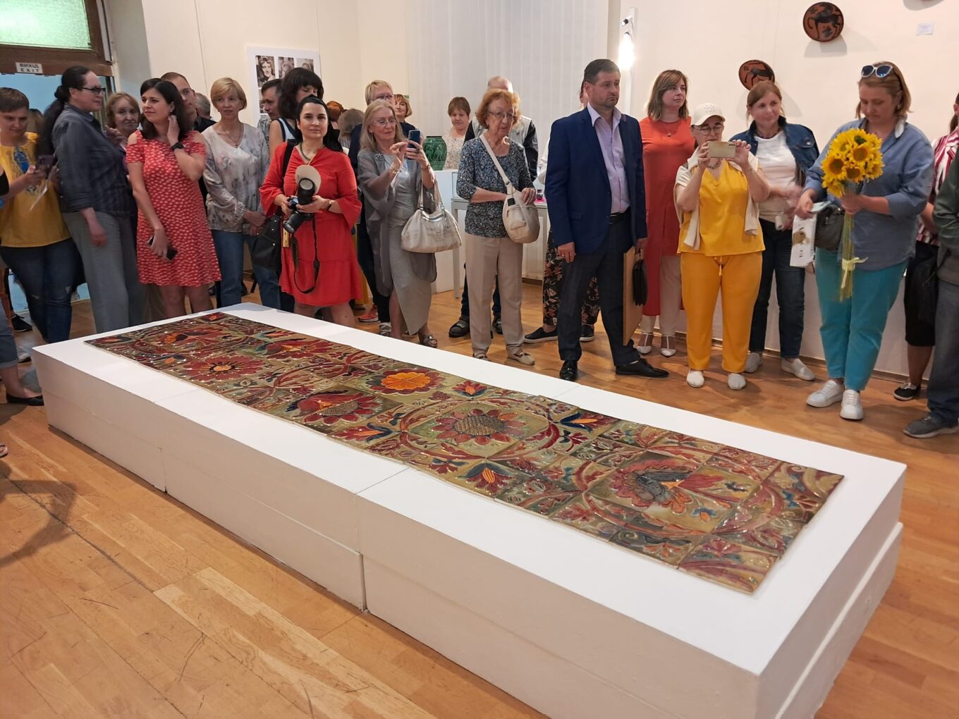 На виставці представлені декоративні вази, пласти, тарелі, підготовчі ескізи, а також один із варіантів керамічного панно станції метро “Хрещатик”.