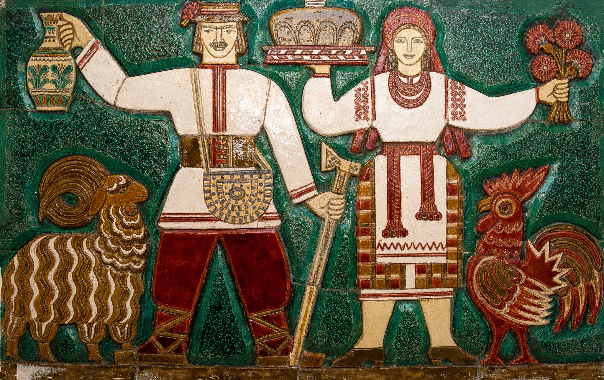 Вони складаються з 12 типів прямокутних плиток з яскравими квітковими візерунками, які мають безліч варіантів компонування. Контури малюнка виконані технікою невисокого, ледь виступаючого рельєфу, і розписані кольоровими поливами відновного вогню.