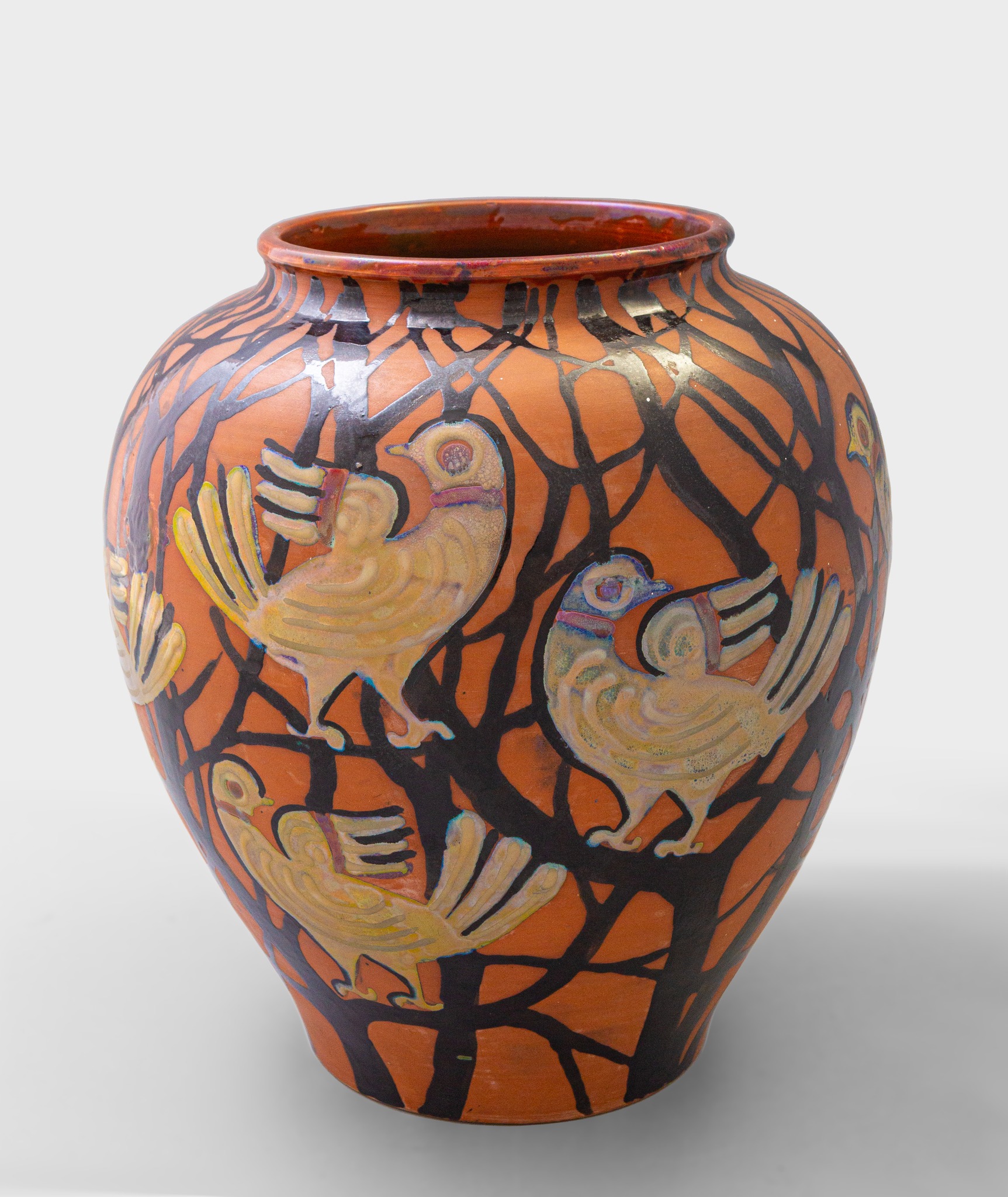 На виставці представлені декоративні вази, пласти, тарелі, підготовчі ескізи, а також один із варіантів керамічного панно станції метро “Хрещатик”.