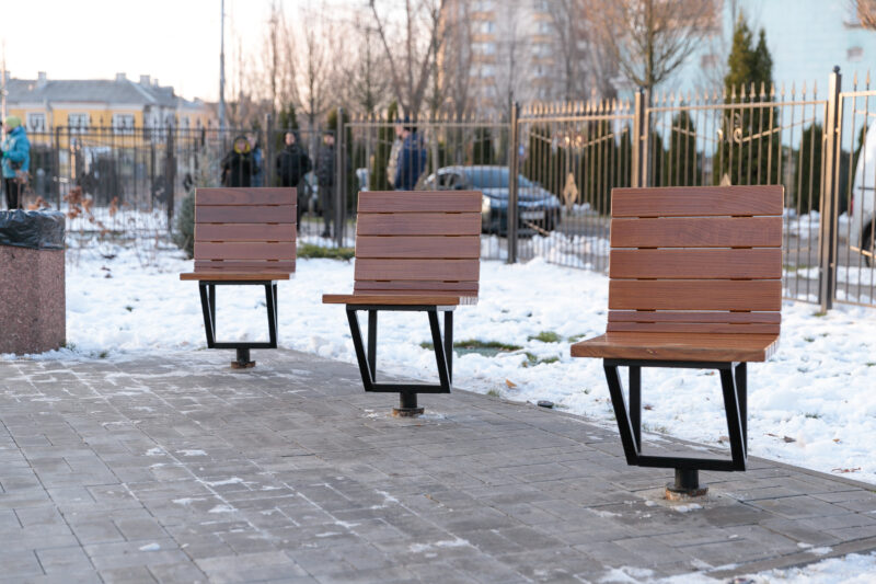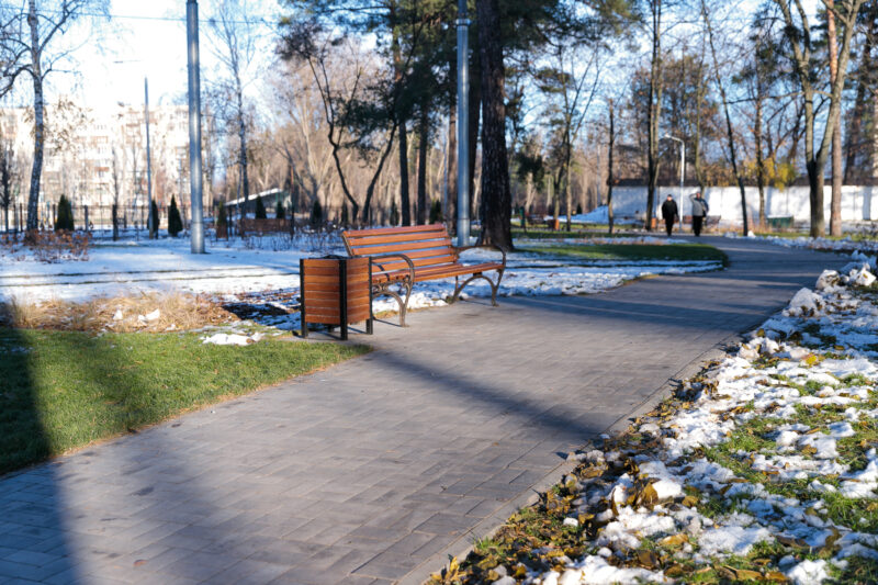 Під час другого етапу облаштування скверу комунальники зробили доріжки, встановили систему автоматичного поливу, освітлення, відеонагляд, огорожу, лави та урни. Озеленення території здійснили працівники КП УЗН Дніпровського району.