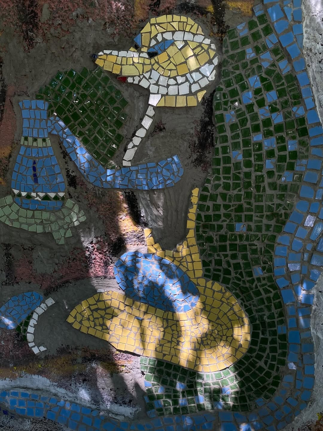 Активісти провели реконструкцію мозаїки, яка є зразком наївного монументального мистецтва, створеного у 1970-1980-х роках невідомим автором. Вона виконана із керамічної плитки та кольорового скла, методом інкрустації.