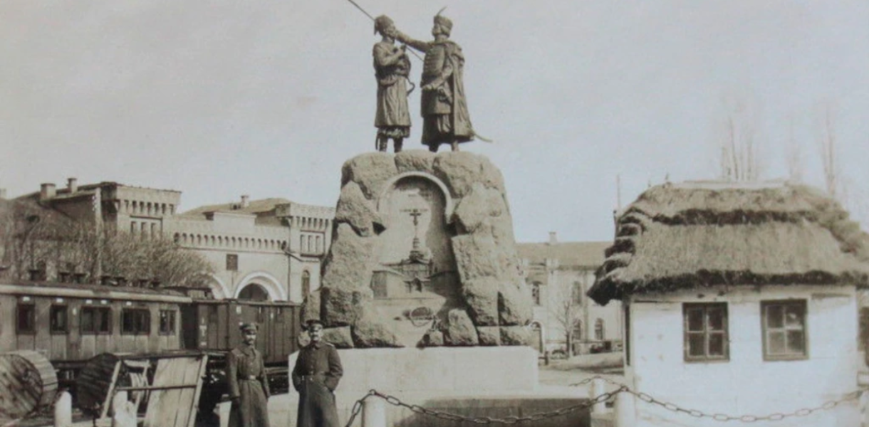 Йдеться про монумент Кочубею та Іскрі, який було знесено у 1918 році.