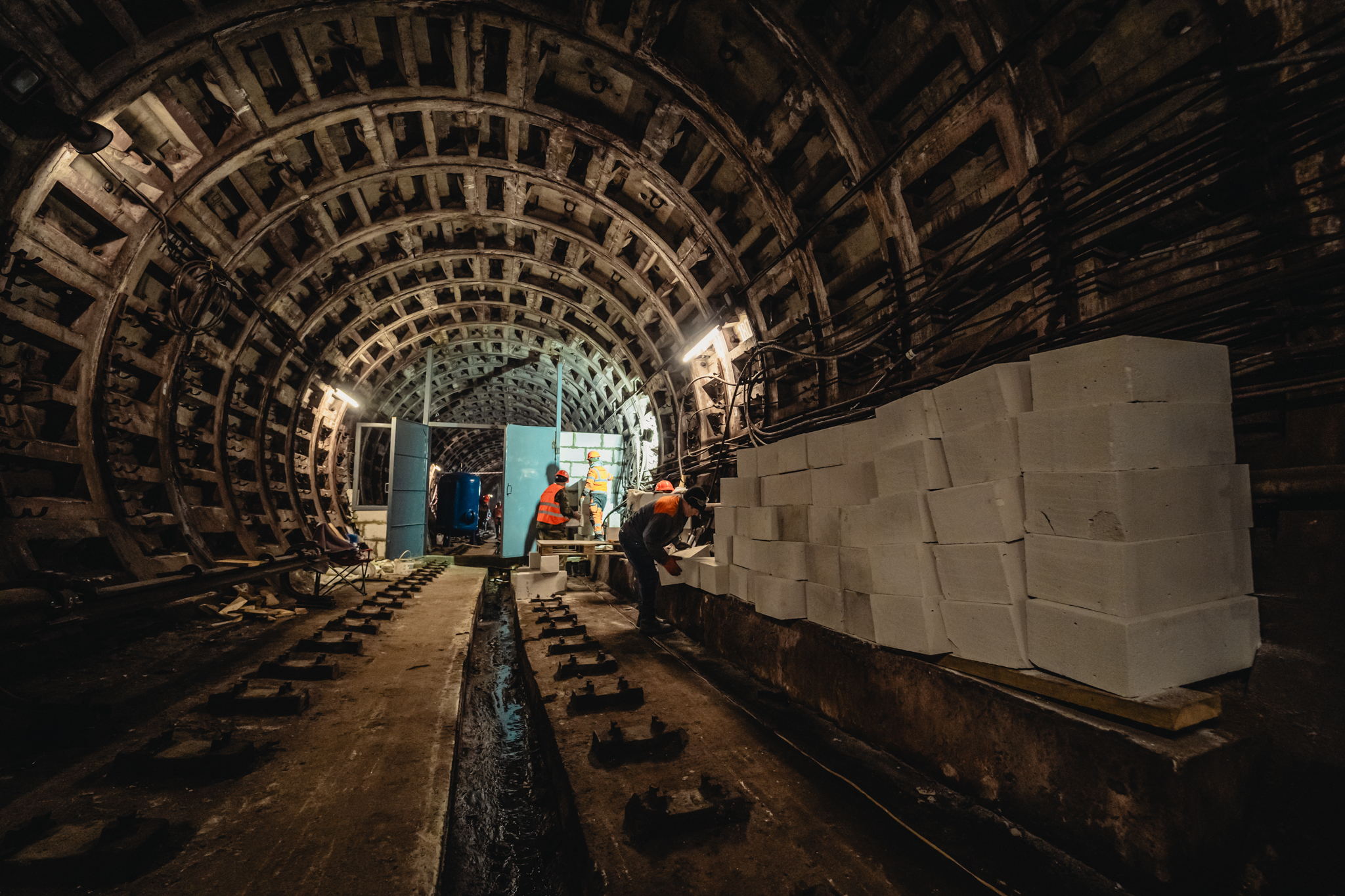 “Безпосередньо ще виконуються роботи усередині тунелю на прилеглих ділянках. Це 27 метрів з одного боку і 20 — з іншого. Там уже виконані роботи, що стосується скажімо так “лікування” тунелю і зараз триває робота для підсилення тунелю по периметру”, — сказав очільник столичної підземки.
