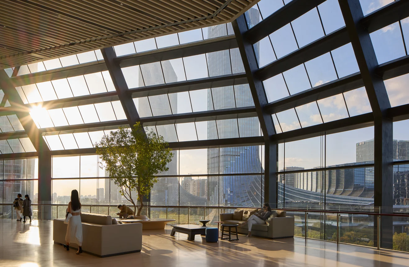 Попри скепсис, інтеграція AI в архітектурні інструменти триває. Після проєкту West Bund Convention Center SOM навіть створила власну систему штучного інтелекту — Natalie, яка допомагає в дизайні фасадів, плануванні простору та оптимізації освітлення.