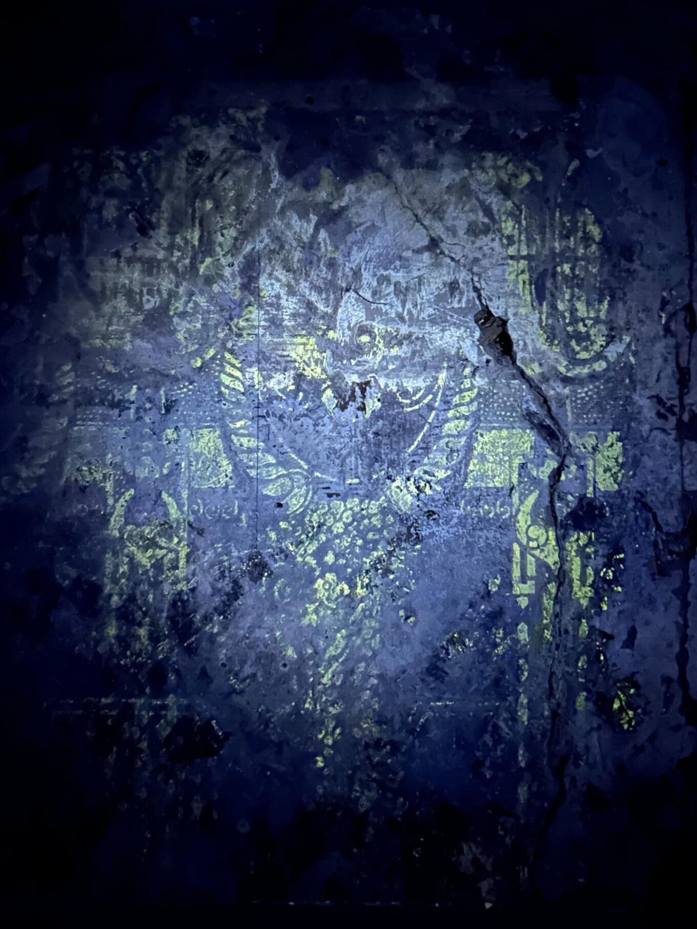 На стінах було виявлено різночасові історичні декорації у вигляді трафаретів, більшість з яких через пошкодження постійними реконстуркціями, вдалось проаналізувати лише в ультрафіолетовому спектрі променів.