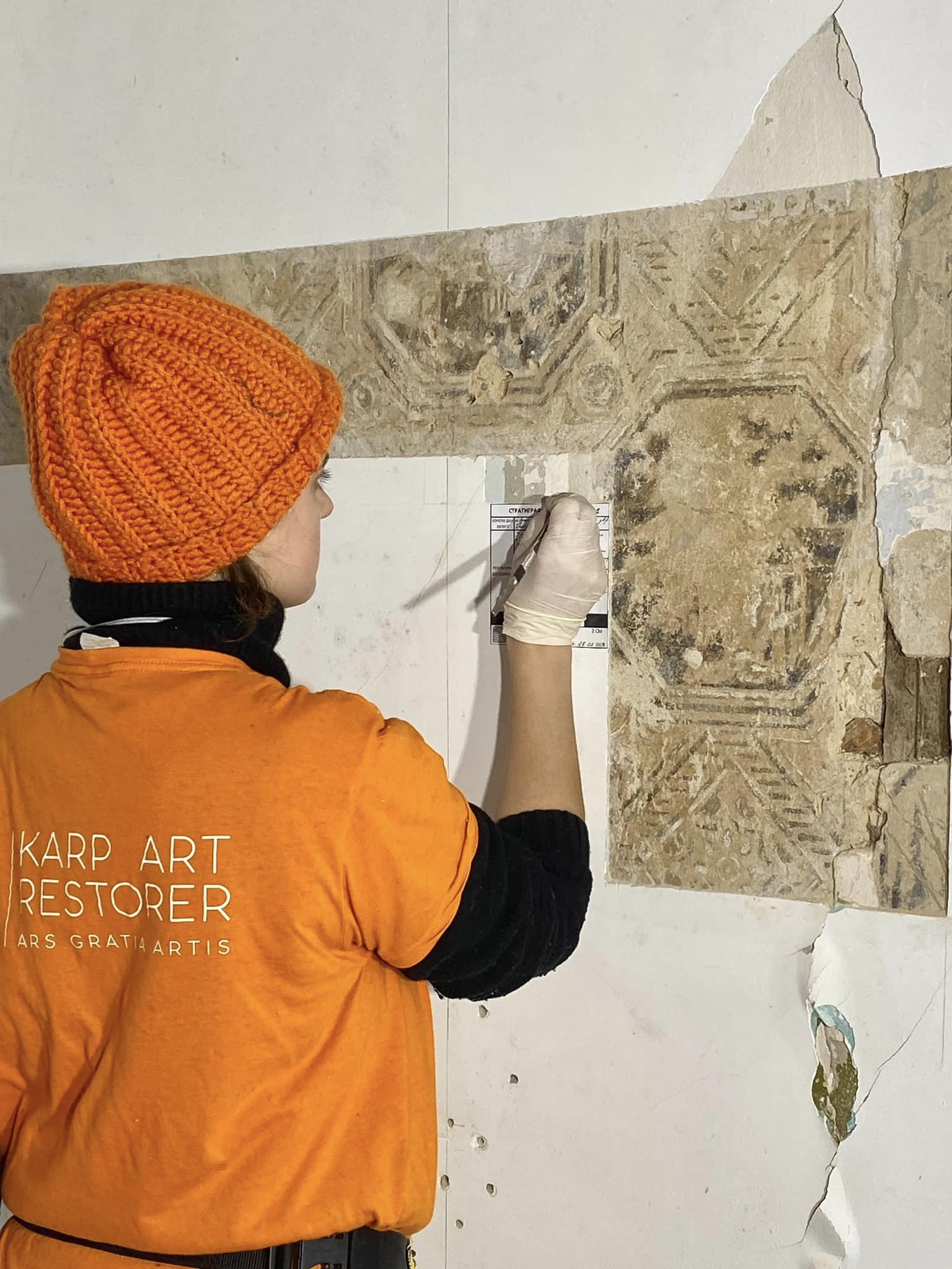 Фахівці відібрали проби для лабораторних аналізів пігментного складу фарбових шарів, вʼязуючої речовини та структури тиньків для порівняльного аналізу технік автентичних та вторинних живописних декорацій.
