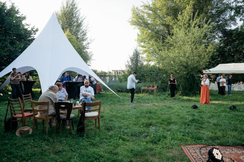 Елла Яцута, ідейниця проєкту, керівниця платформи «Алгоритм дій» і засновниця Літературної платформи «Фронтера»: «Сьогодні я розповідаю про мрію, яка стає реальністю. У 2020 ми гуляли з Олегом Покальчуком між деревами цього саду — біля родинного дому Покальчуків — і тоді вперше з’явилась ідея оживити цей простір. Відтоді минуло багато часу. Світ змінився, ми змінилися. Але сьогодні ми усі тут — поміж цих самих дерев. Я не знаю, чи простір уже говорить з вами. Але мені він каже: тут будуть відбуватись неймовірні речі.»