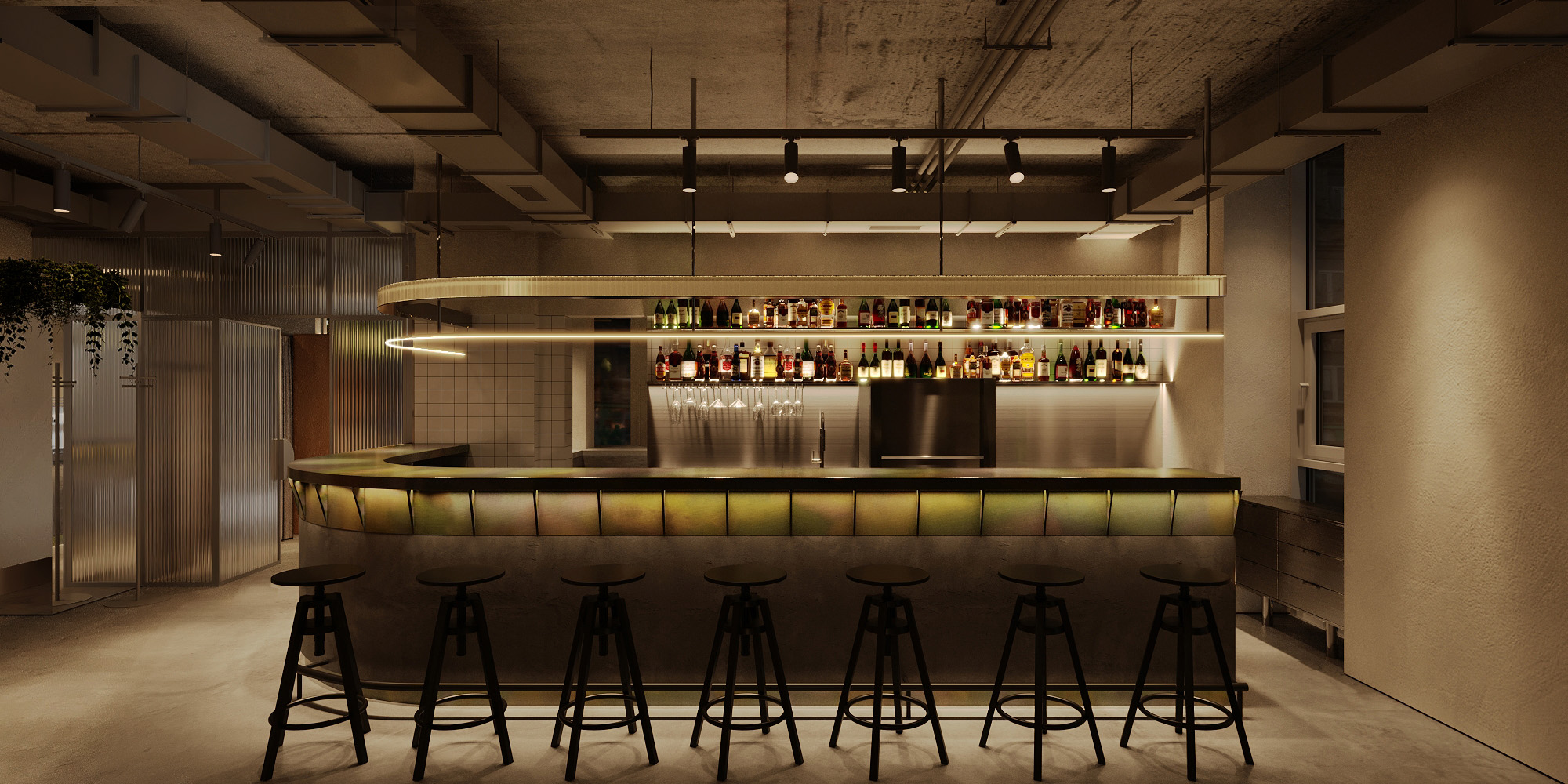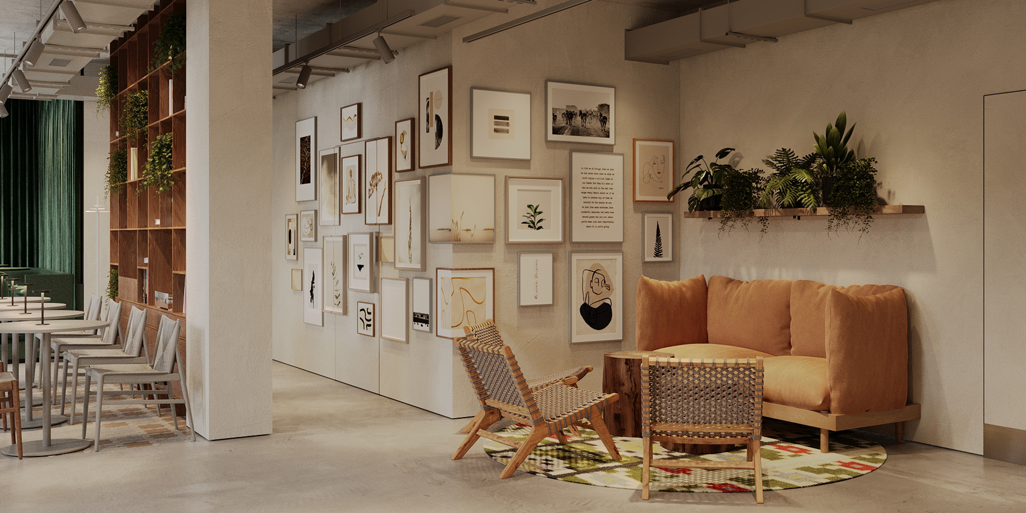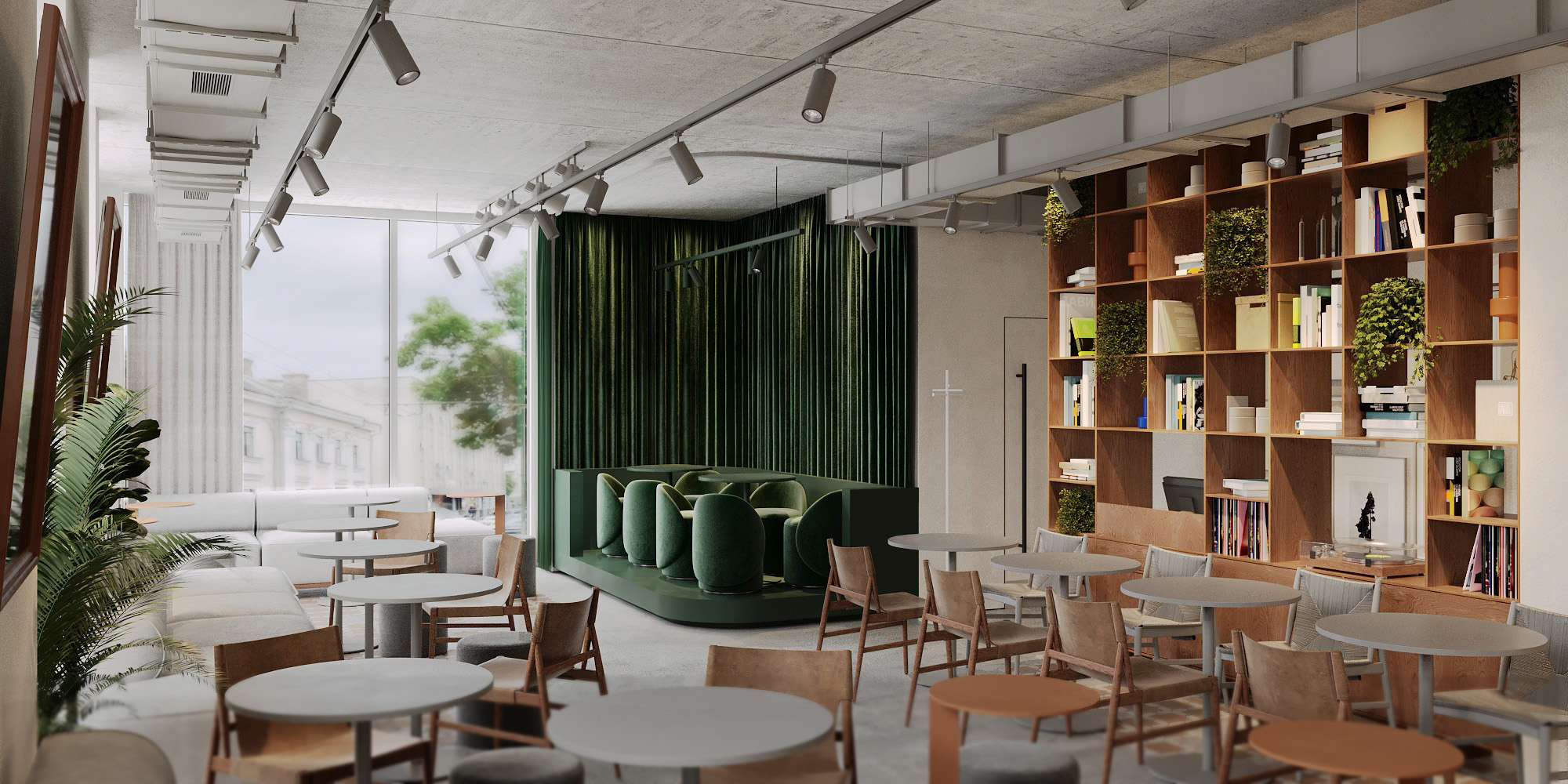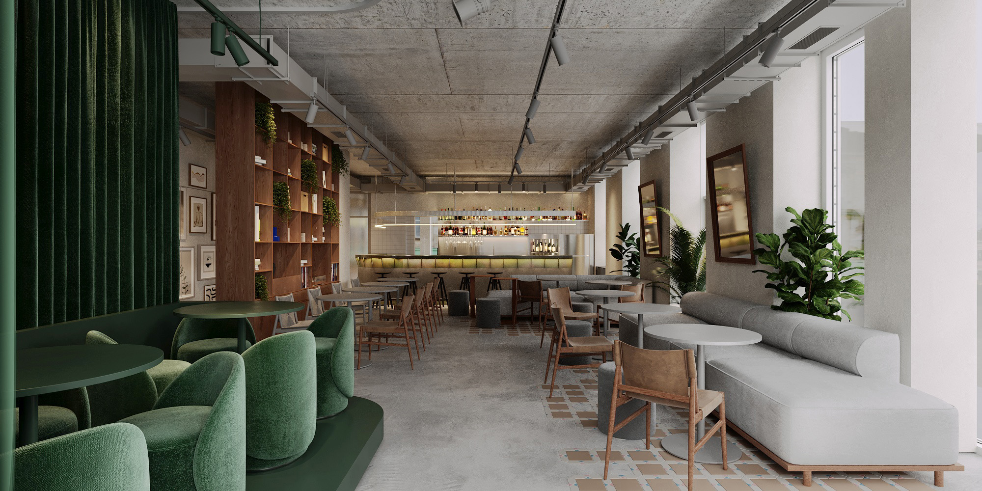 “Нашою великою ідеєю було створити місце, яке стане «своїм» для гостей з різними інтересами. Для цього ми організували простір так, аби в ньому було однаково комфортно поснідати великою компанією, попрацювати за ноутбуком і скоротати вечір за баром. В інтер’єрі закладу багато світла, зелені й натуральних матеріалів, а також дрібка неону, який привертатиме увагу перехожих ще з вулиці”, – коментує проєкт команда balbek bureau.