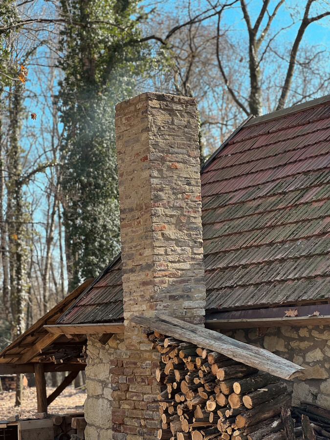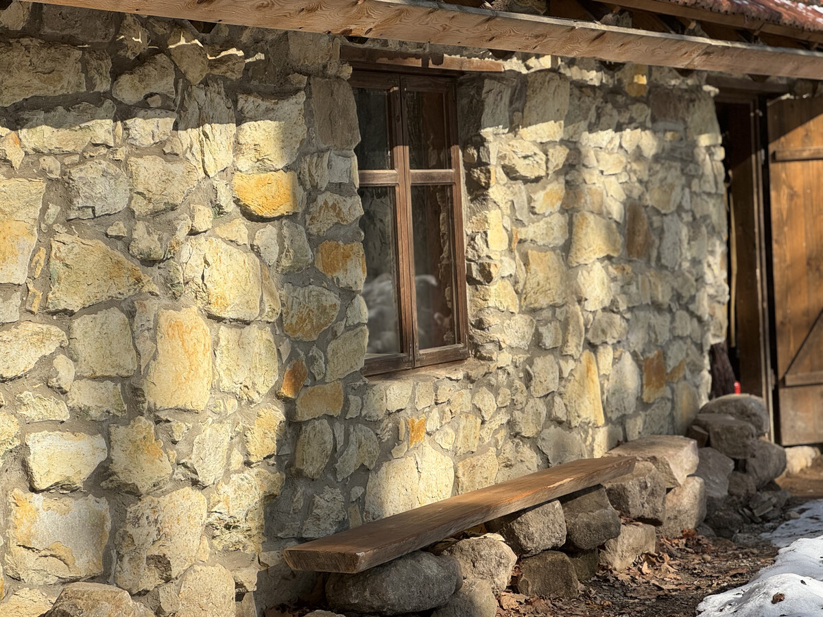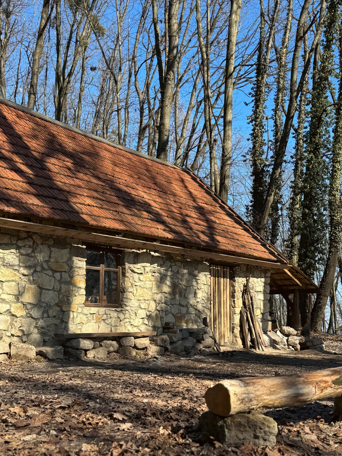 Це єдиний архітектурний об’єкт у музеї, збудований із каменю, його стіни виконані з пісковику на вапняно-цементному розчині, а дах покритий черепицею.