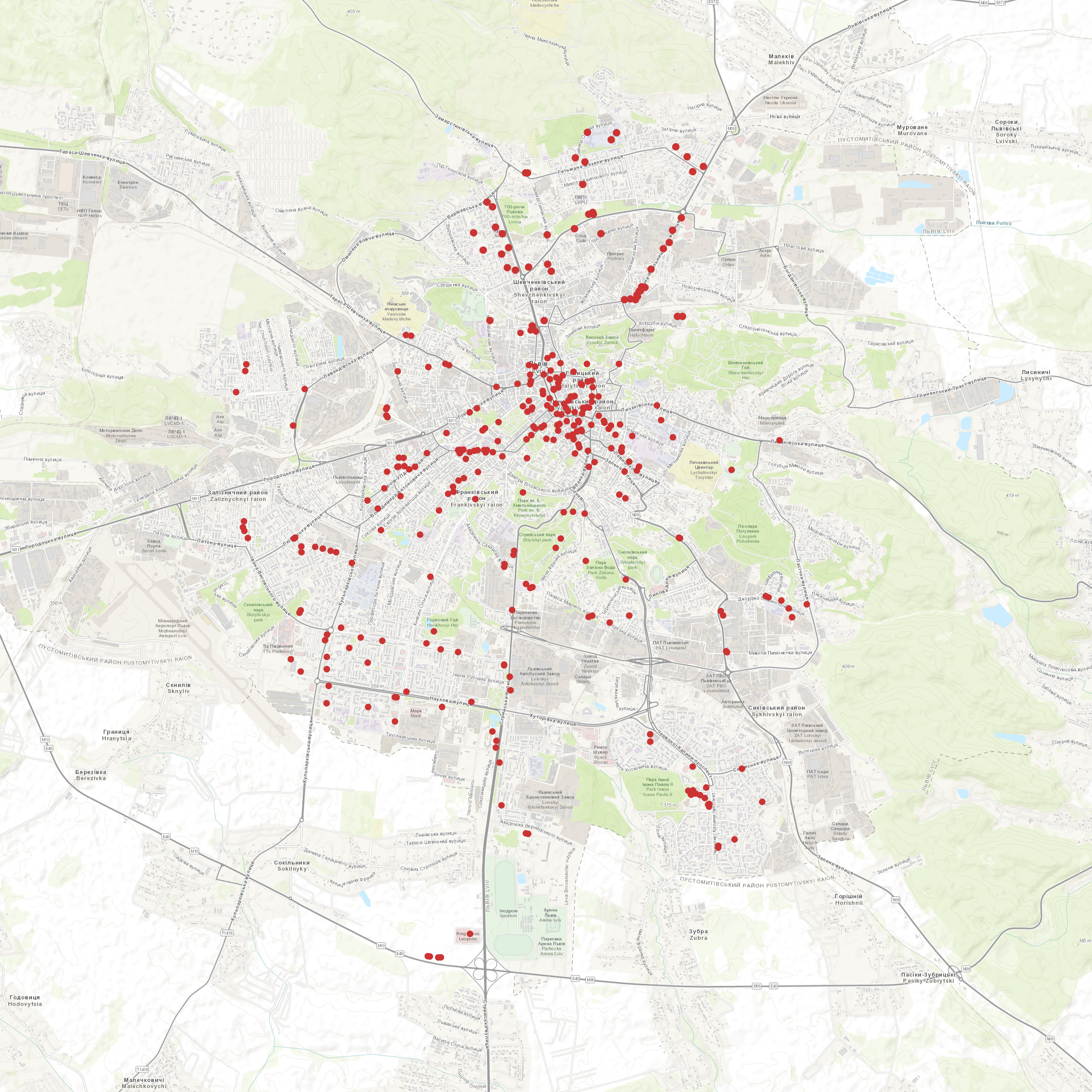 До переліку увійшли усі доступні для мешканців парковки, у тому числі встановлені приватними бізнесами. Зокрема, гарний приклад подає одна з українських торгових мереж: кожен магазин має 5 П-подібних стійок з нержавіючої сталі біля входу. Також попит на місця для паркування задовольняє великий приватний виш.