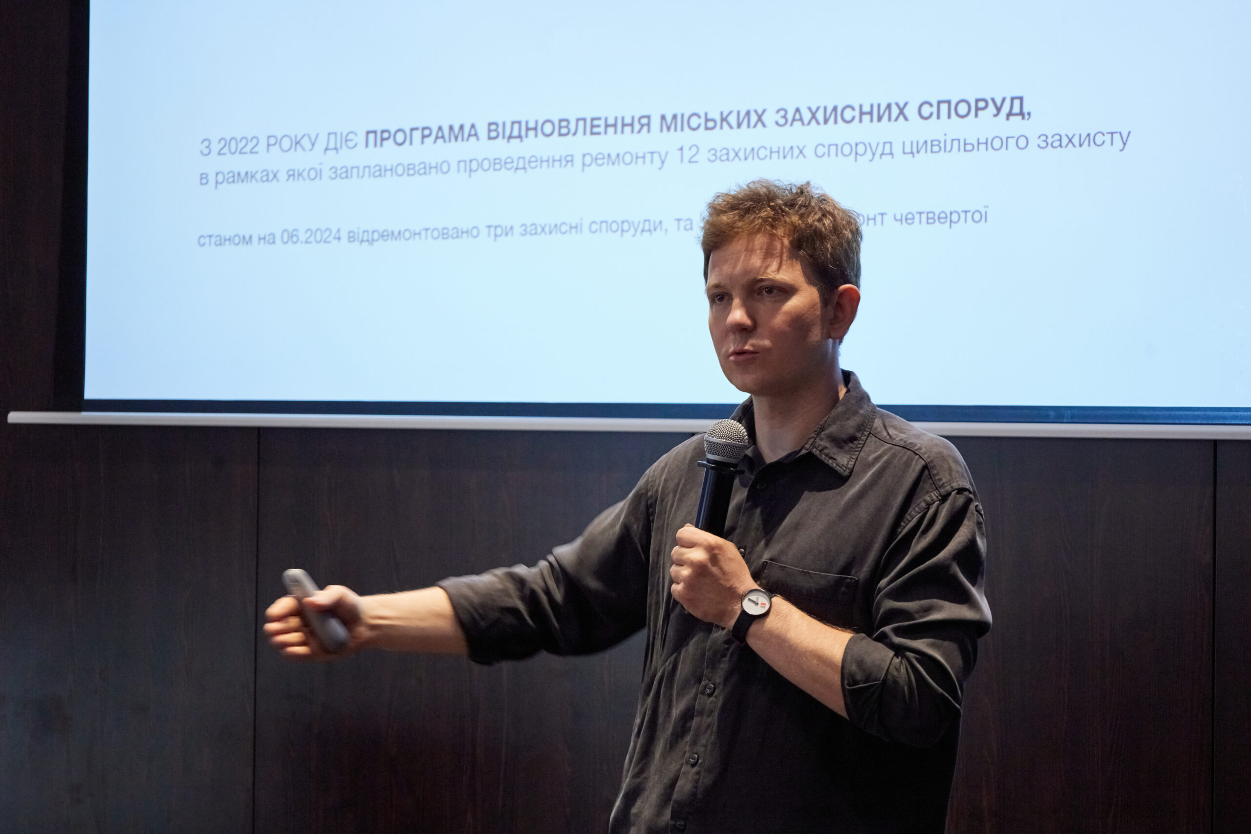 Антон Коломєйцев, головний архітектор Львова виступив з презентацією про позитивну динаміку використання укриттів в підземних поверхах, паркінгах новобудов з забезпеченням необхідних умов для довгого перебування, таких як опалення та відокремлення від решти машин. Він продемонстрував низку рішень не тільки з боку архітектури та урбаністики, а й комплексне бачення безпеки жителів міста як системи заходів, де враховуються суміжні міські служби і людина є в центрі уваги.