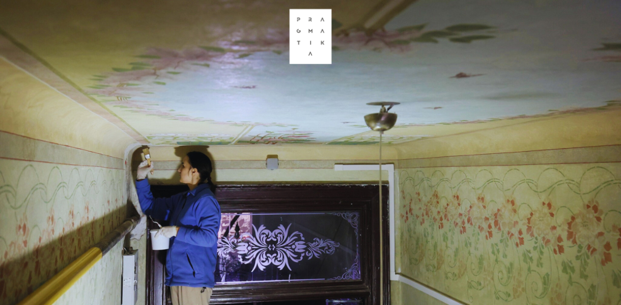 Цього тижня 25 учасників позмінно разом із професійними реставраторами працюватимуть у під’їзді будинку-пам’ятки на вул. Нечуя-Левицького, 19.