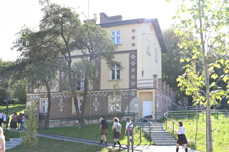 У будівлі зберегли автентичні сходи та п’єци, замінили вікна й двері на дерев’яні, облаштували умови доступності для людей з інвалідністю. У дворі з’явилися спортивні та ігрові майданчики, імпровізований амфітеатр і простір для пластунів.