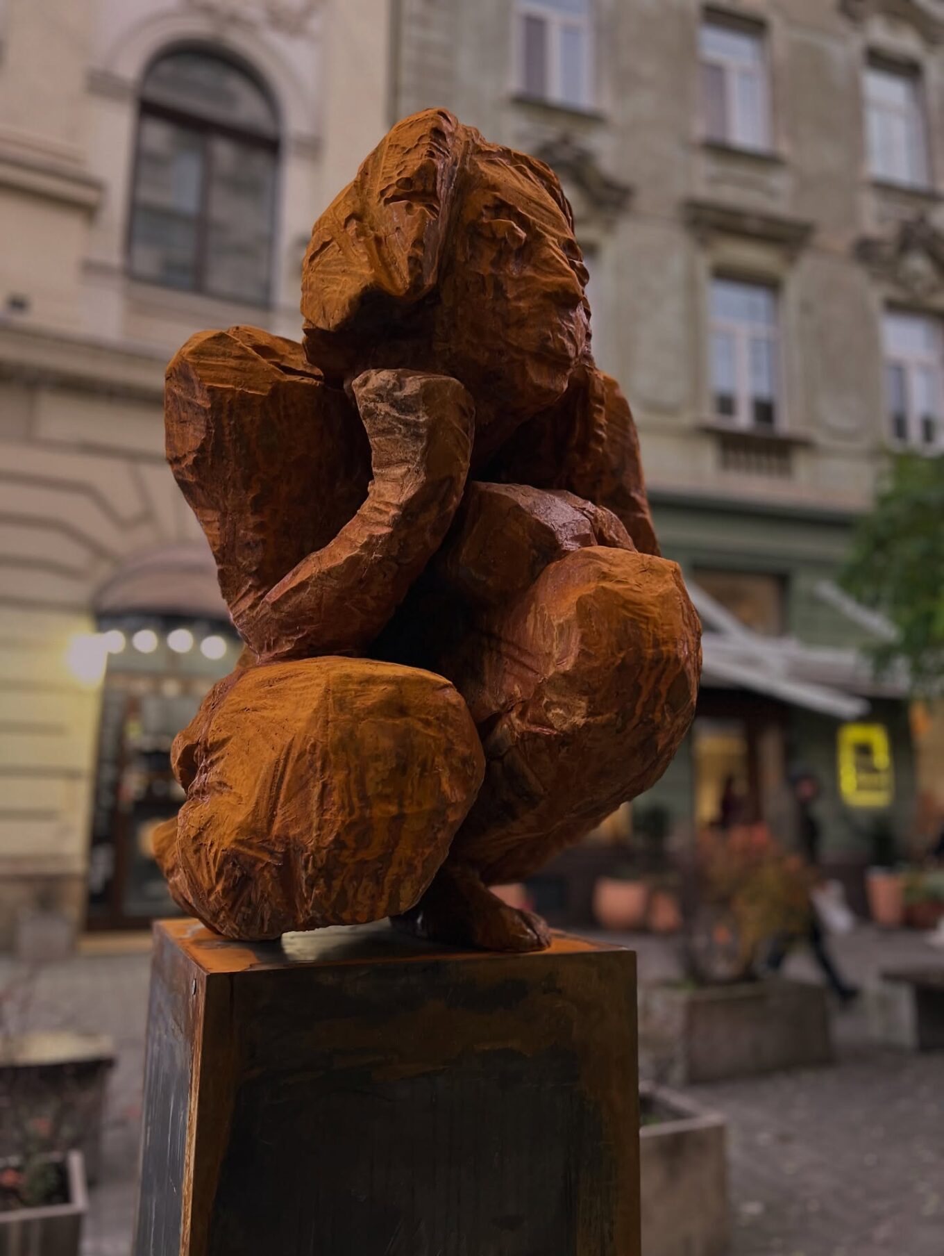Локація скульптури також невипадкова: вулиця, де робота встановлена, колись була тісною та майже задушливою. Тепер це пішохідний простір поруч із Театром Курбаса — середовищем творчої концентрації.