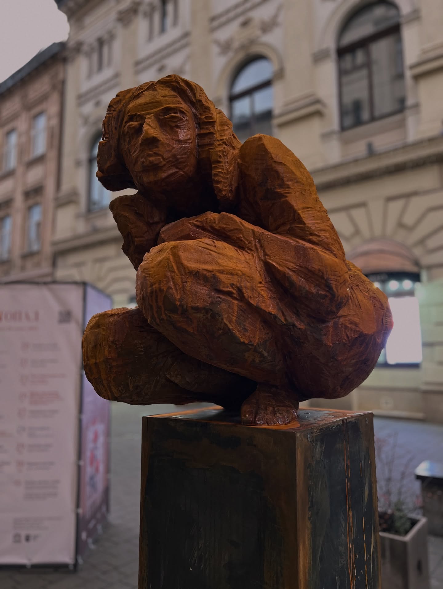 Локація скульптури також невипадкова: вулиця, де робота встановлена, колись була тісною та майже задушливою. Тепер це пішохідний простір поруч із Театром Курбаса — середовищем творчої концентрації.